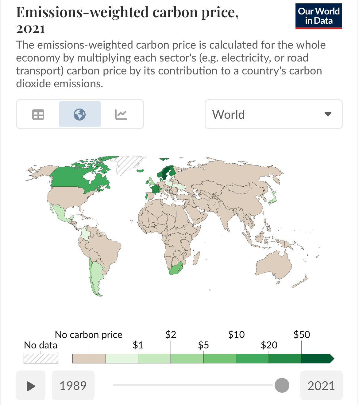 Och visst kan vi höja koldioxidskatten mer, men vi har redan världens högsta i Sverige. Och de flesta har inte ens någon.