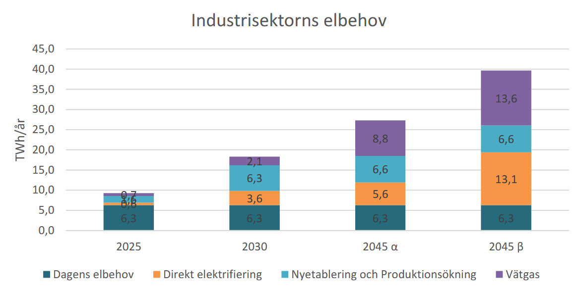 industrins ökande elbehov kommer alltså från en mix av existerande verksamheter, utökade verksamheter samt nyetableringar – bland annat baserat på ...intervjuer med ett tjugotal aktörer i länet...som står för 93% av regionens växtgasutsläpp...