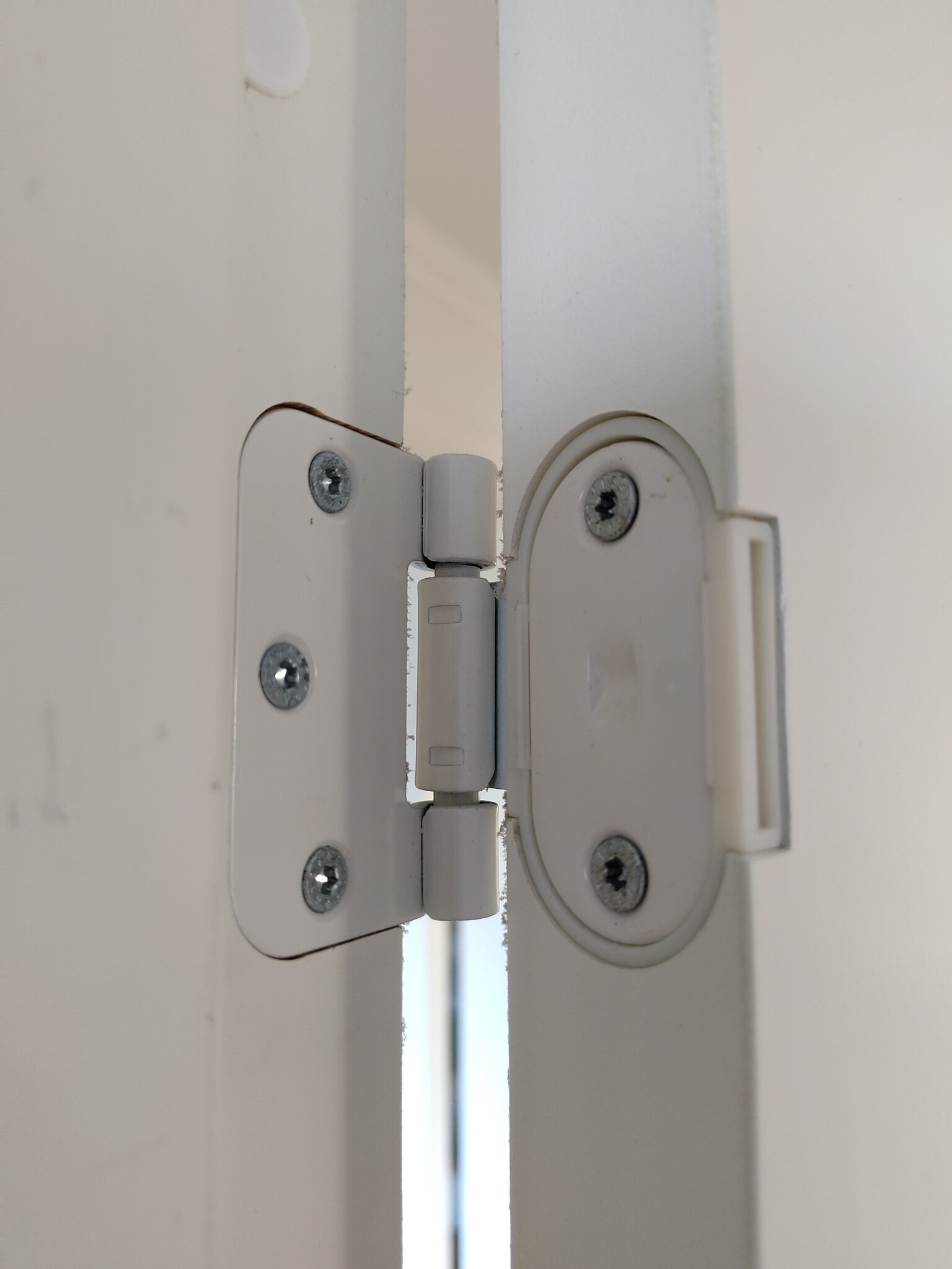 Skaffa en gångjärnsriktare Habo #3 och knäck det övre gångjärnet lite.