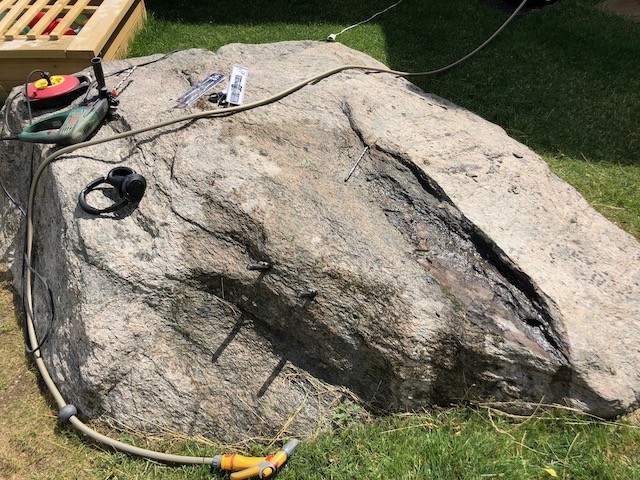 Leta efter spår (lager) i graniten. Spräcker du tvärs alla lager - mycket jobb, lite effekt men ibland ett måste ändå.