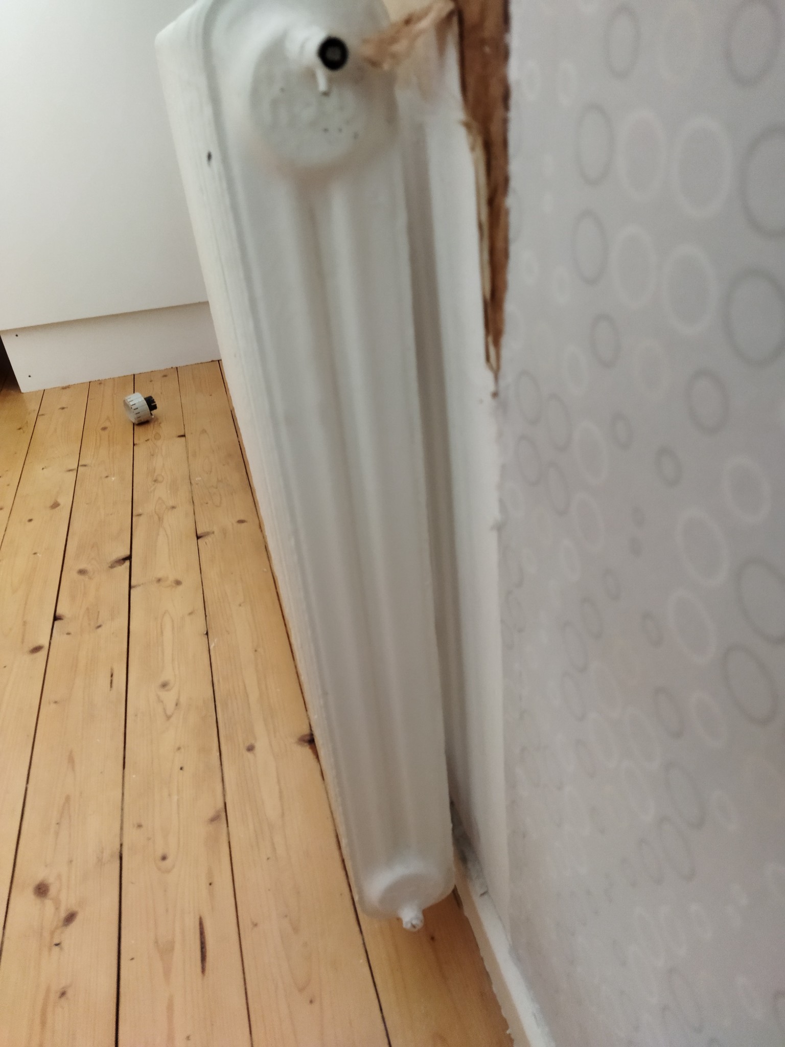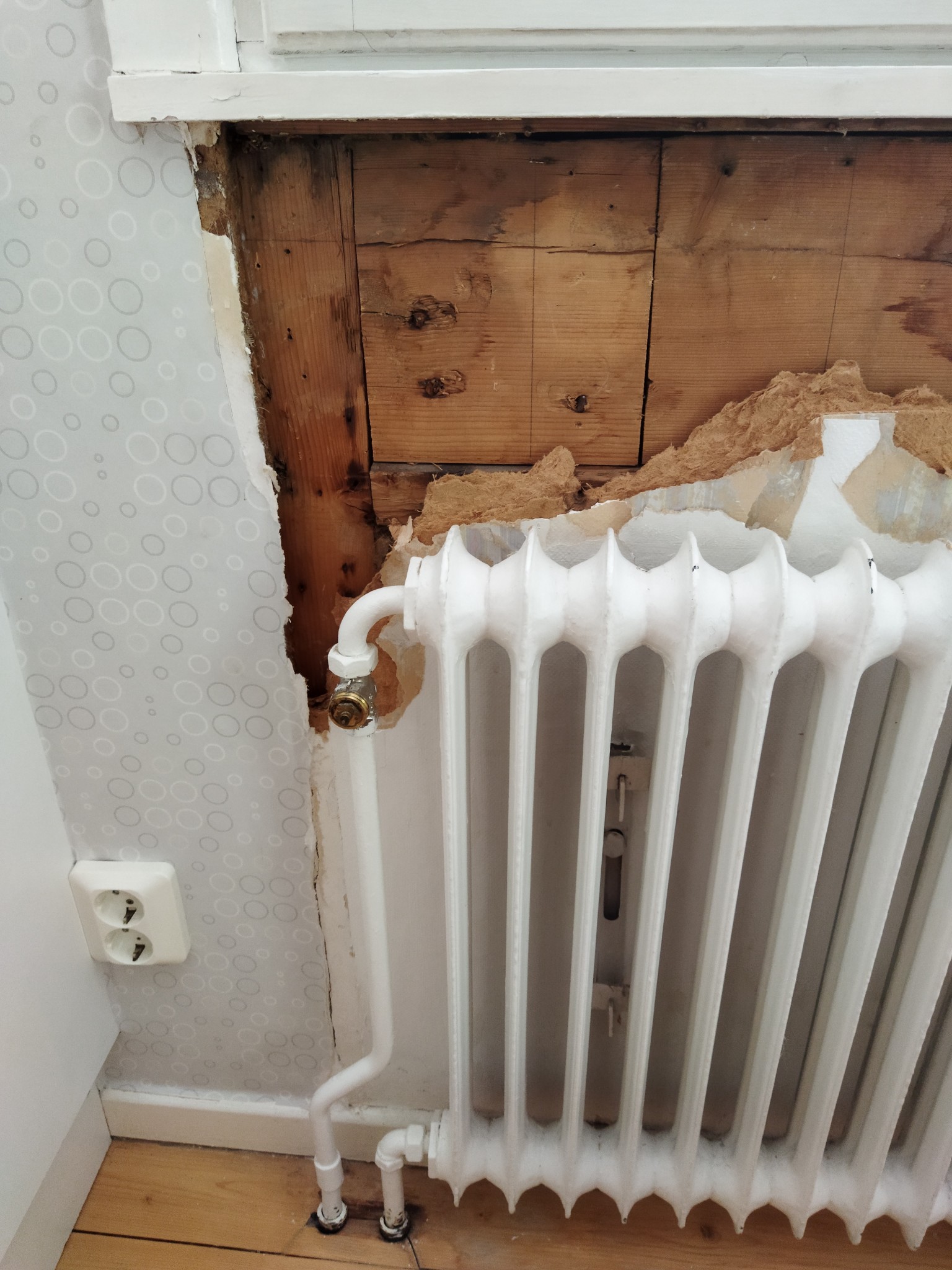 Jag stänger av pumpen, sänker trycket och hoppas på att det går utan för mycket spill. Kanske har någon radiatorpropp i gömmorna.