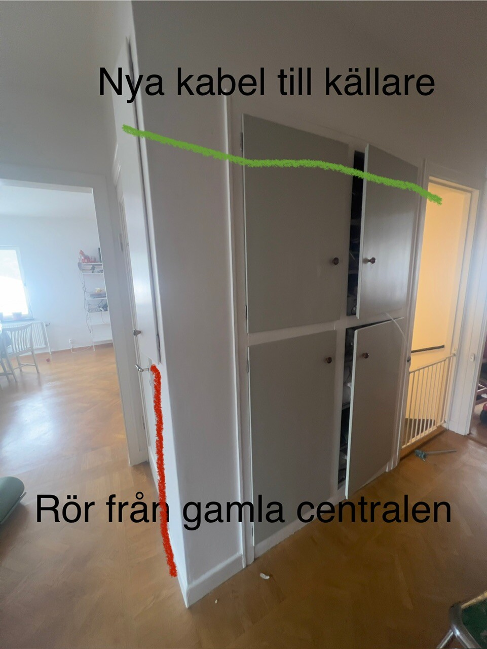 Ta bort gammal elcentral och dra nätverk genom röret från källare?