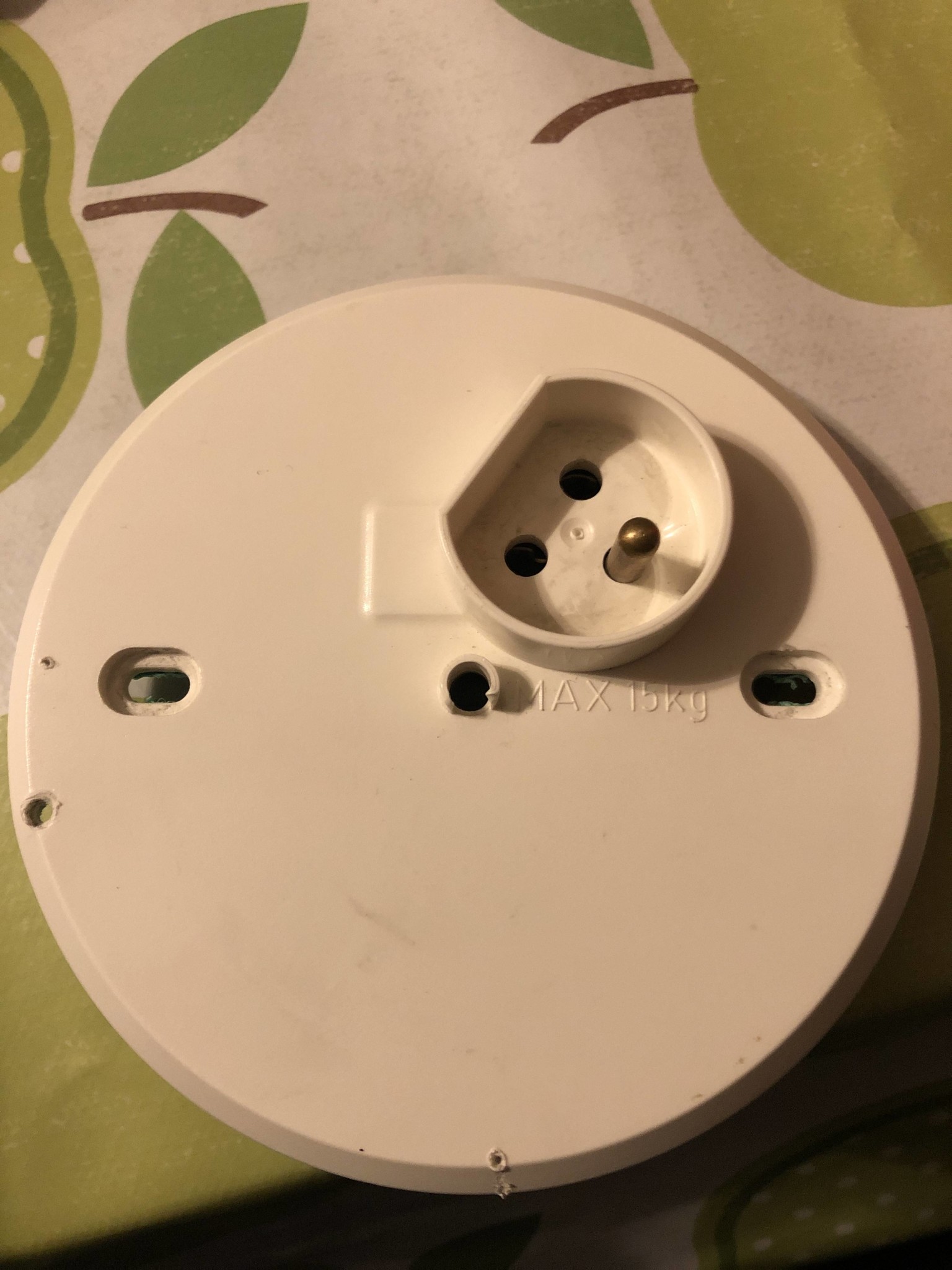 Ser inte riktigt vilken modell det är. Men det ser ut att vara en takdosa med mittkrok. Takkuttaget skruvas fast med den då takdosa saknar skruvar på sida.90rammar skrev: