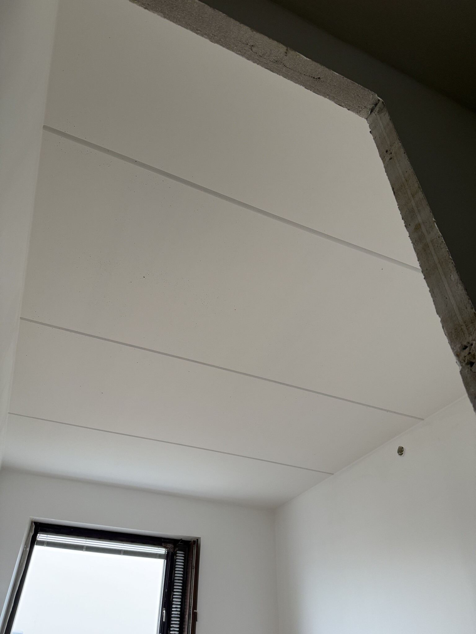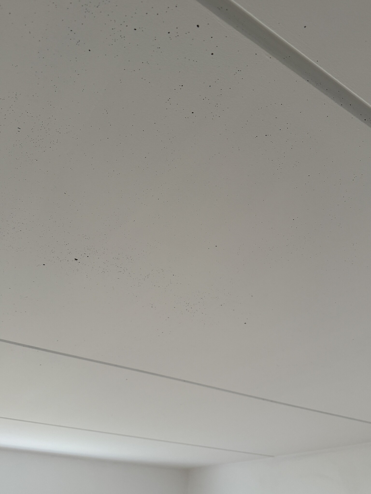 Jag gjorde valet att inte spackla för jag orkade verkligen inte, tar bara sjukt lång tid, ännu jobbigare för kroppen och jättesvårt att få till bra i ett tak. Så jag får bara leva helt enkelt med synliga porer i taket, får inbilla mig att det är en stjärnhimmel när jag ska sova