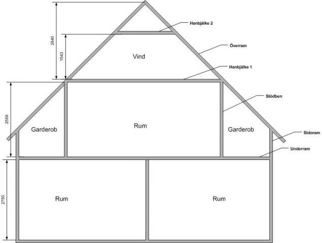 Vet inte om det är den "Svenska" takstolen. Jag har ändrat lite i min ritning och flyttat stödbenen utåt mot överramen.