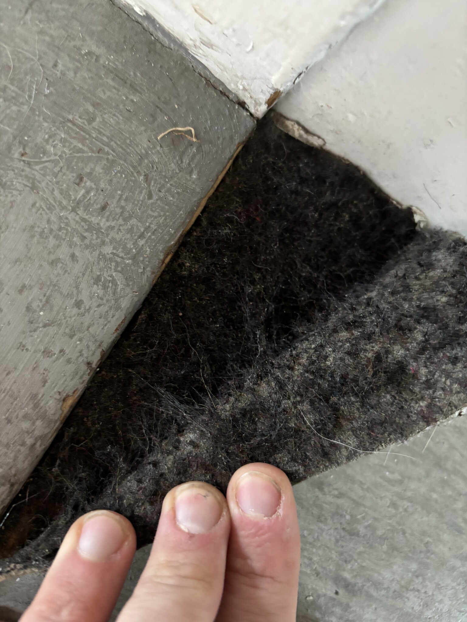 Hej! Jag tänkte ta bort några plastmattor. När jag lyfter lite på mattan så är det något svart mjukt dämpande fibermaterial. Under det ser det ut som spånskiva, eller vad tror ni? Kan det vara asbest här?
