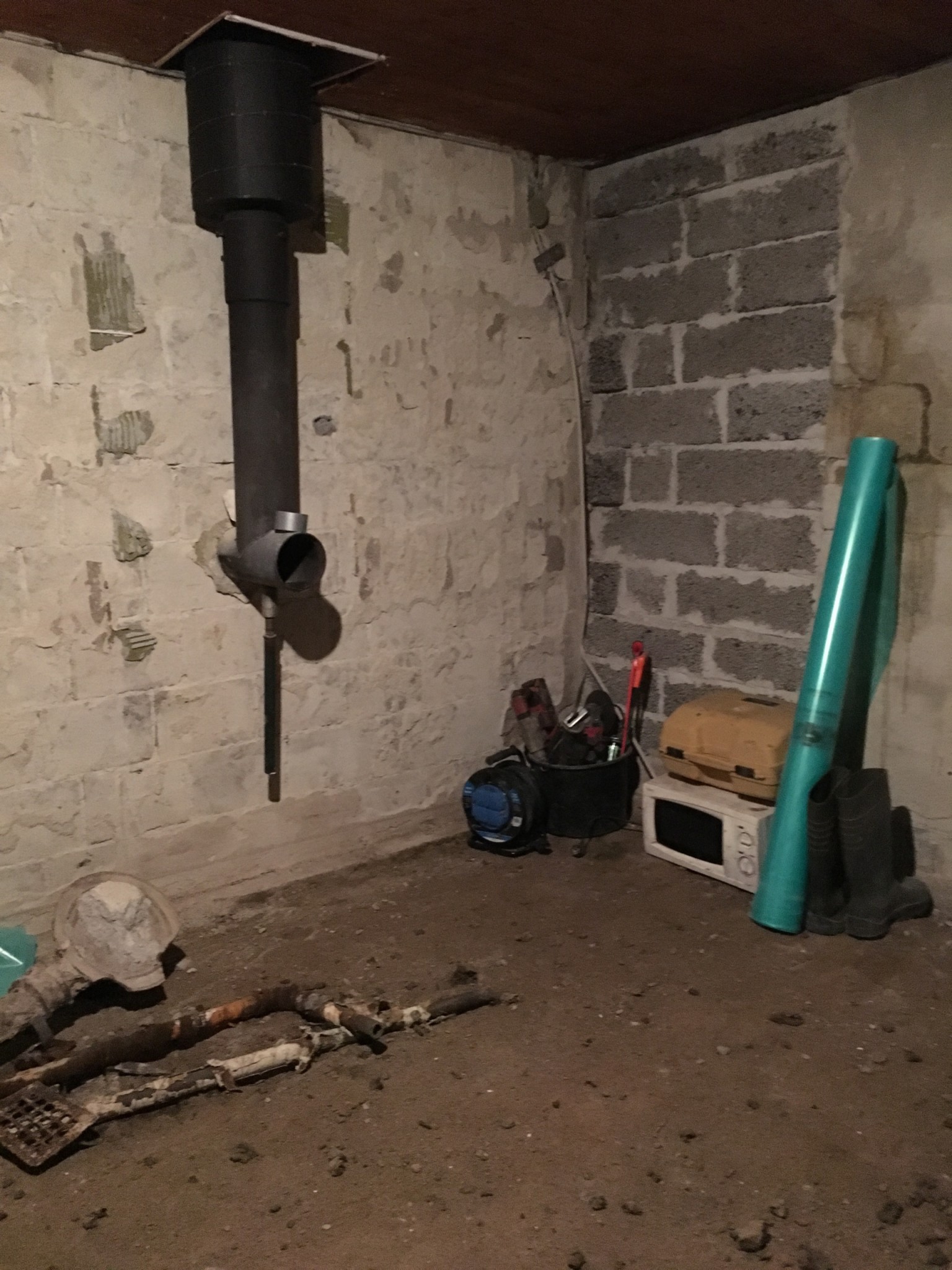 Det har tidigare stått en braskamin i källaren som vi vill sätta igen/ta bort då rummet ska bli sovrum.