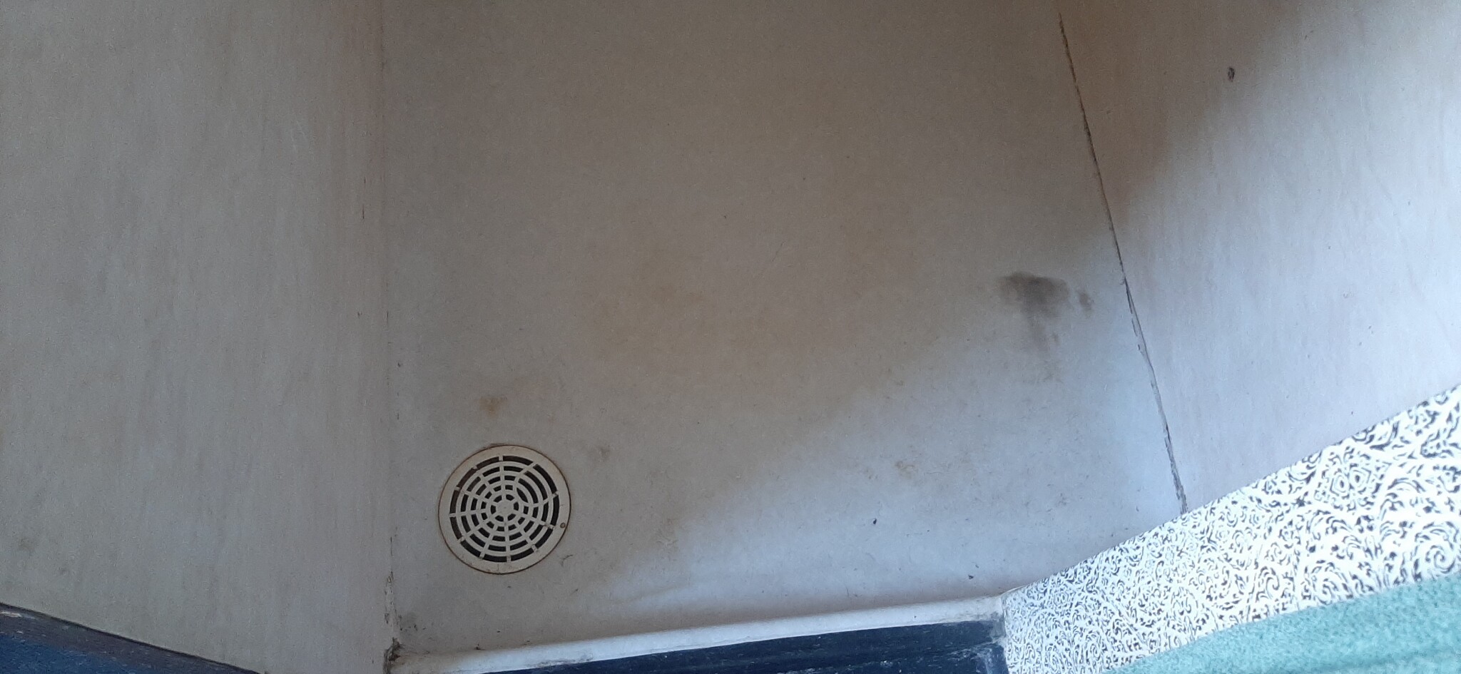 Håller våtrumsmattan och -tapeten tätt eller har de fått sprickor i hörnen eller kring brunnen?
