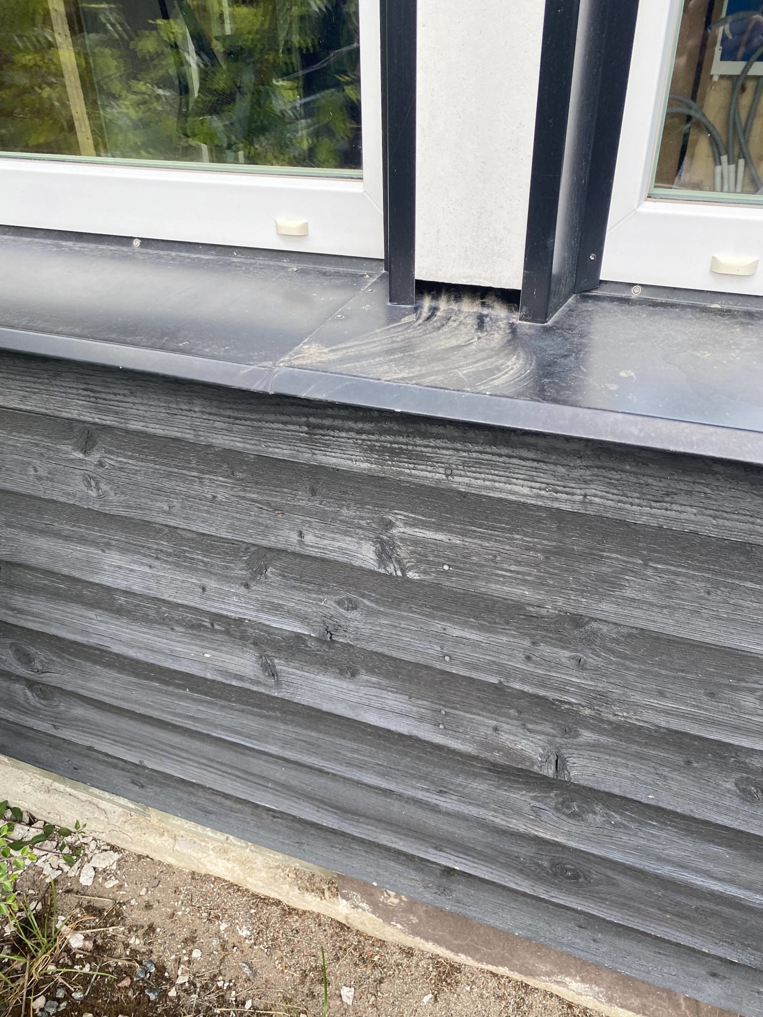 Glipan i fönsterblecket som orsakade vattenskadan la jag mjukfog på, det borde hålla tills jag kan hitta en plåtslagare som sätter dit nytt (korrekt) fönsterbleck.