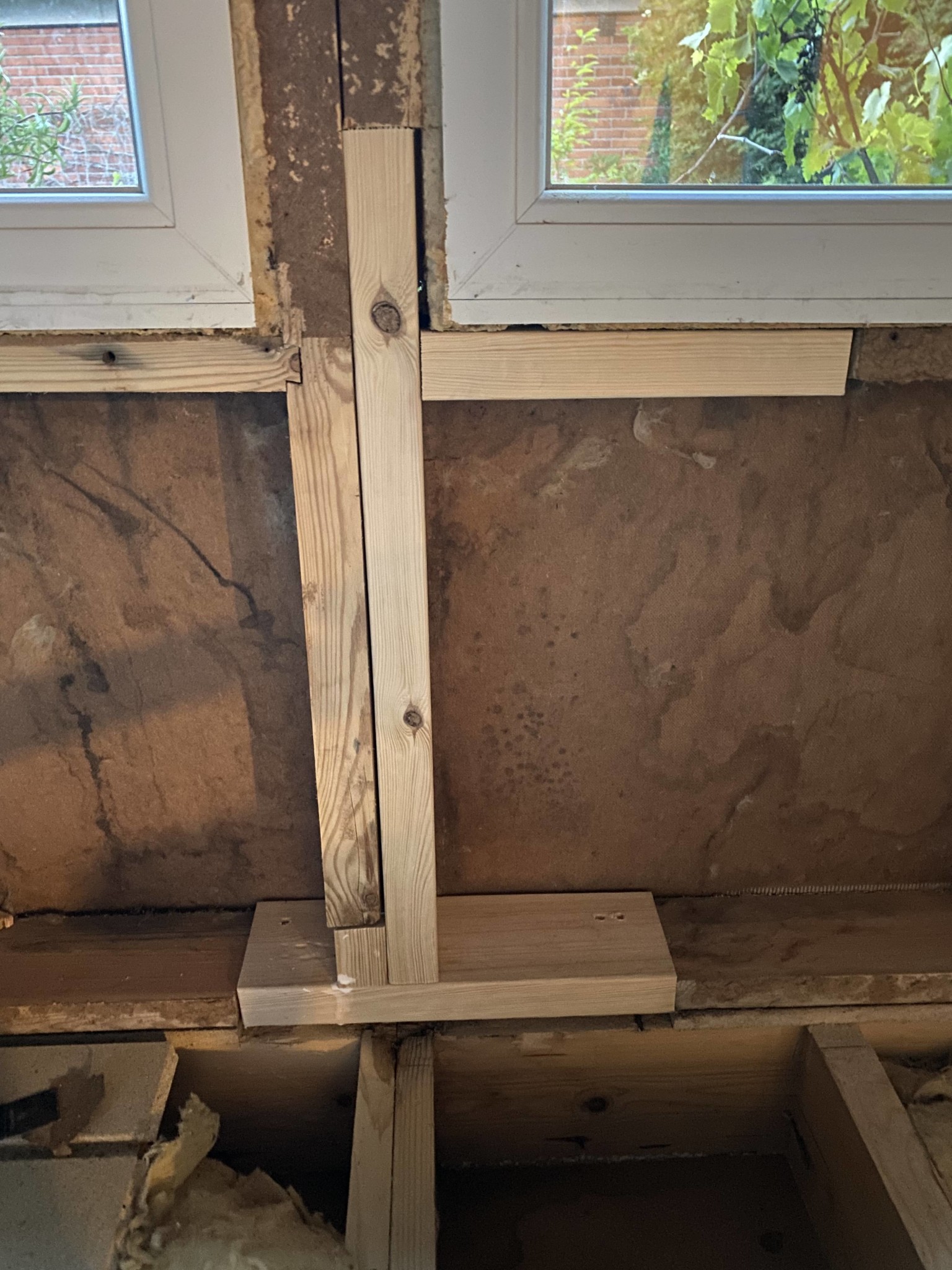 Såhär ser det ut efter jag tog bort de rötskadade reglarna och ersatta med nya. Ska bara sätta på vinkelbeslag mm så bör det vara åtgärdad (om inte ni tycker annorlunda).