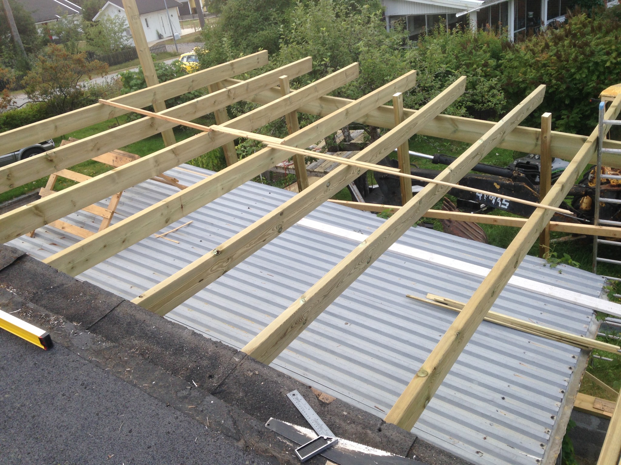 Taket ska kläs med takpapp men undrar hur undersidan blir ful med tiden eller hur en snickare skulle ha byggt istället .