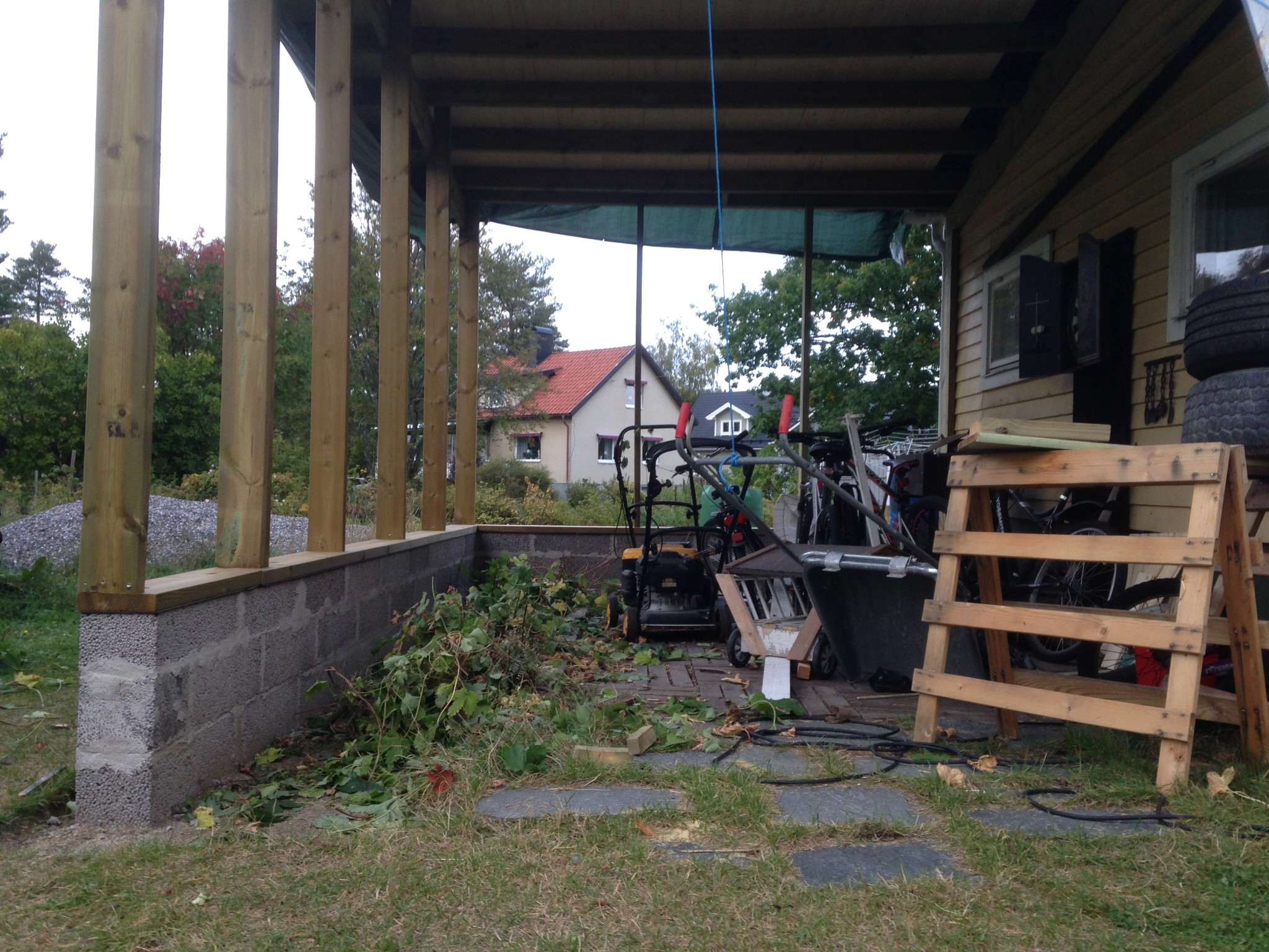 Murade tre lager med lecablock sedan syllpapp och syll.