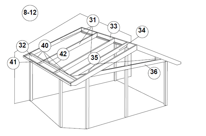 Snickarna som vi har lejt till att bygga vårt uterum har precis blivit klara, jag funderar dock lite på uppbyggnaden av taket. Det är en stomme med sadeltak och nockblak enligt bilden nedan. Detta köpte vi som en byggsats från Willab Garden.