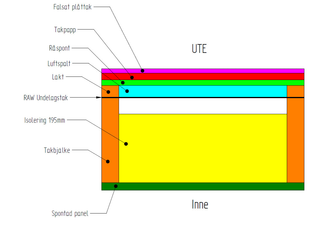 Det jag funderar över är att man har satt en plast ovanför isoleringen och under luftspalten för att skilja dessa åt, det är ett underlagstak från RAW