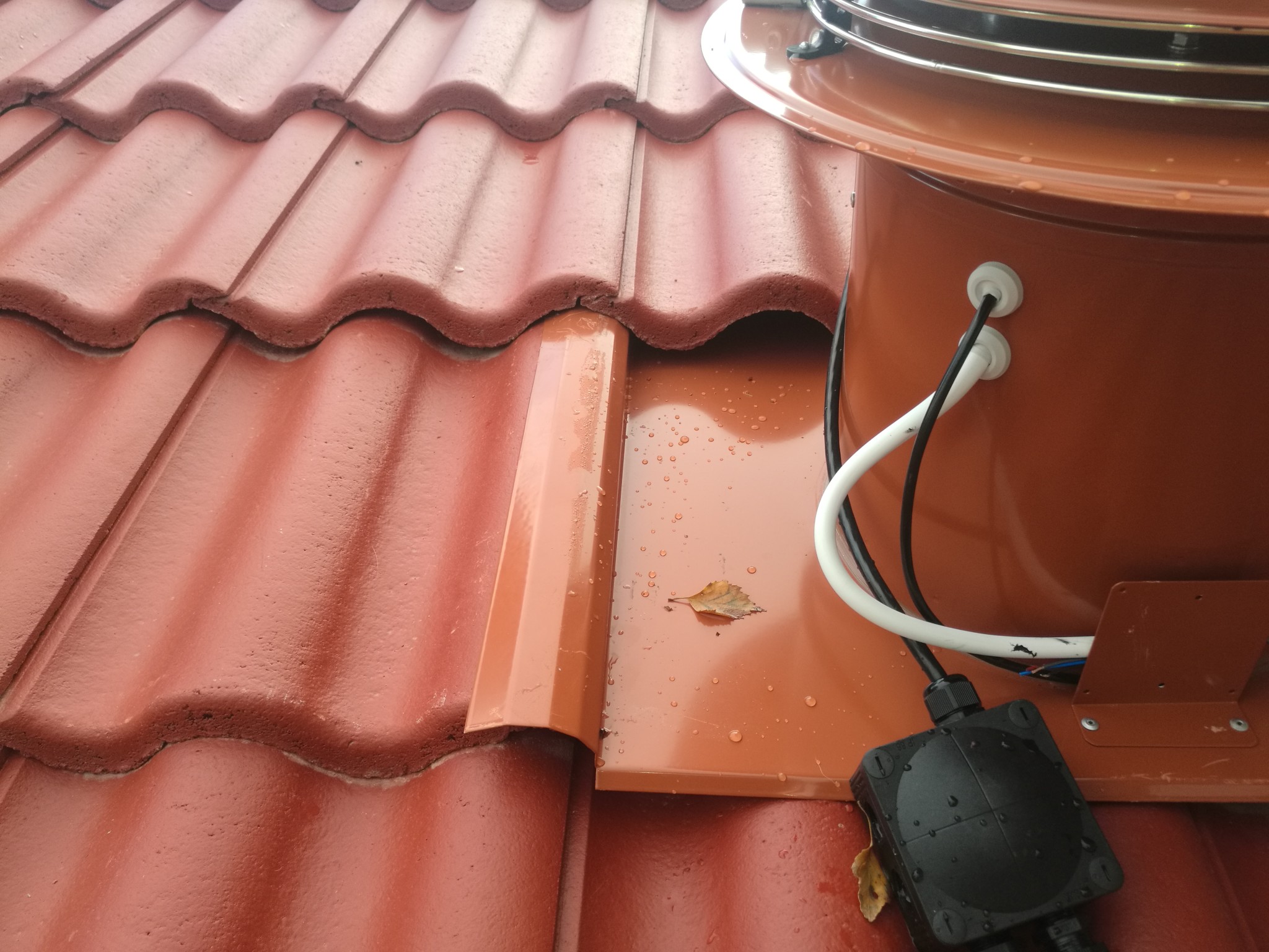 Den är felmonterad, båda sidorna skall ligga ovan på takpannorna. Den vänstra sidan på bilden ligger under takpannan.