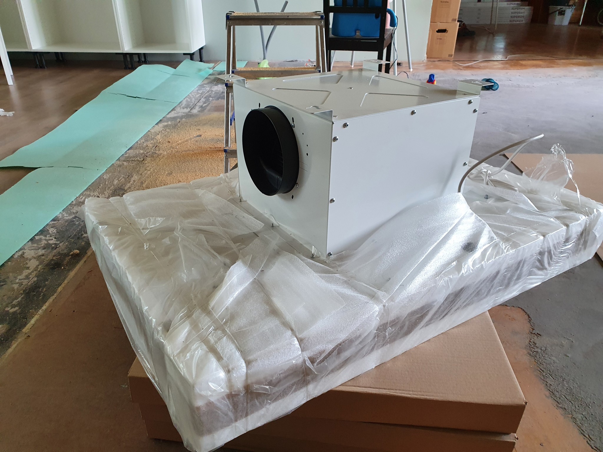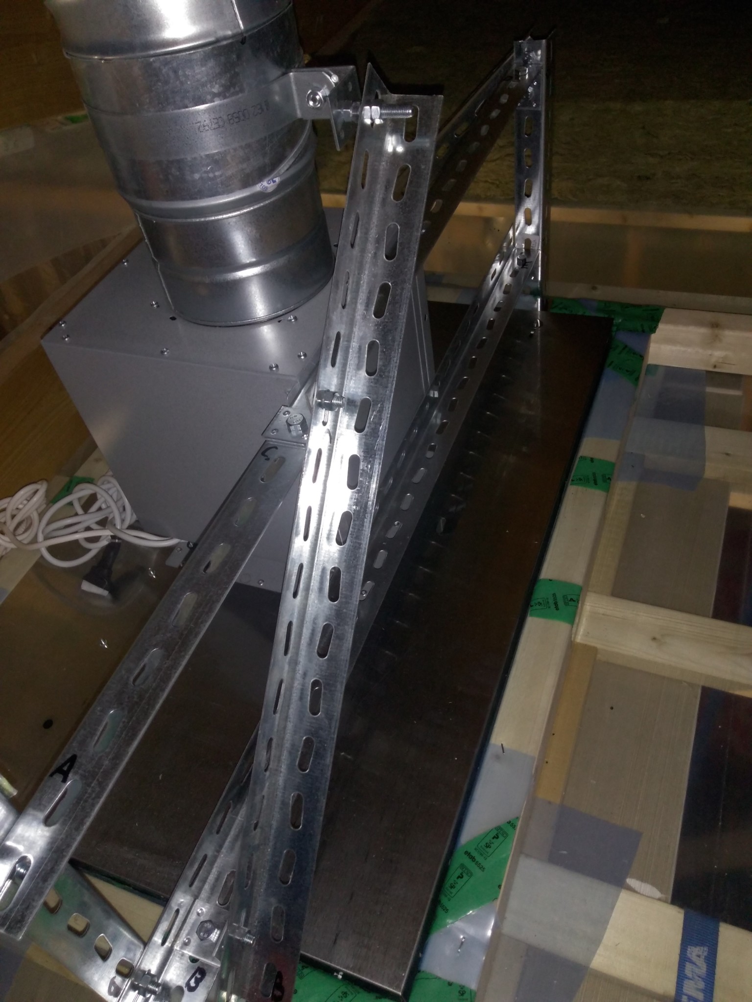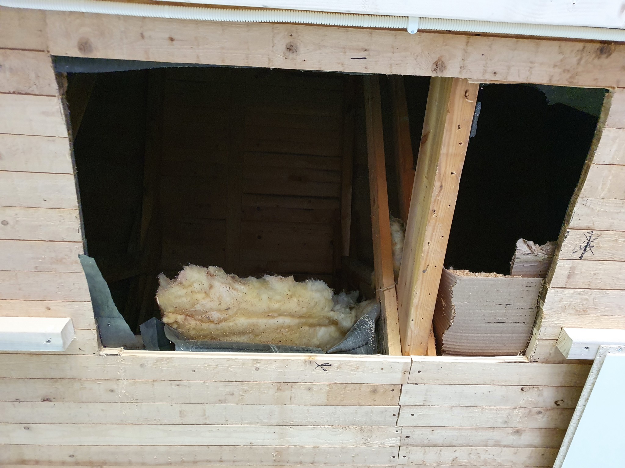 Det här schabraket ska upp i det hålet... Behöver jag tänka på att lägga någon typ av isolering runt själva motorn uppe på vinden sen? Eller ska den vara "fri" så att säga?