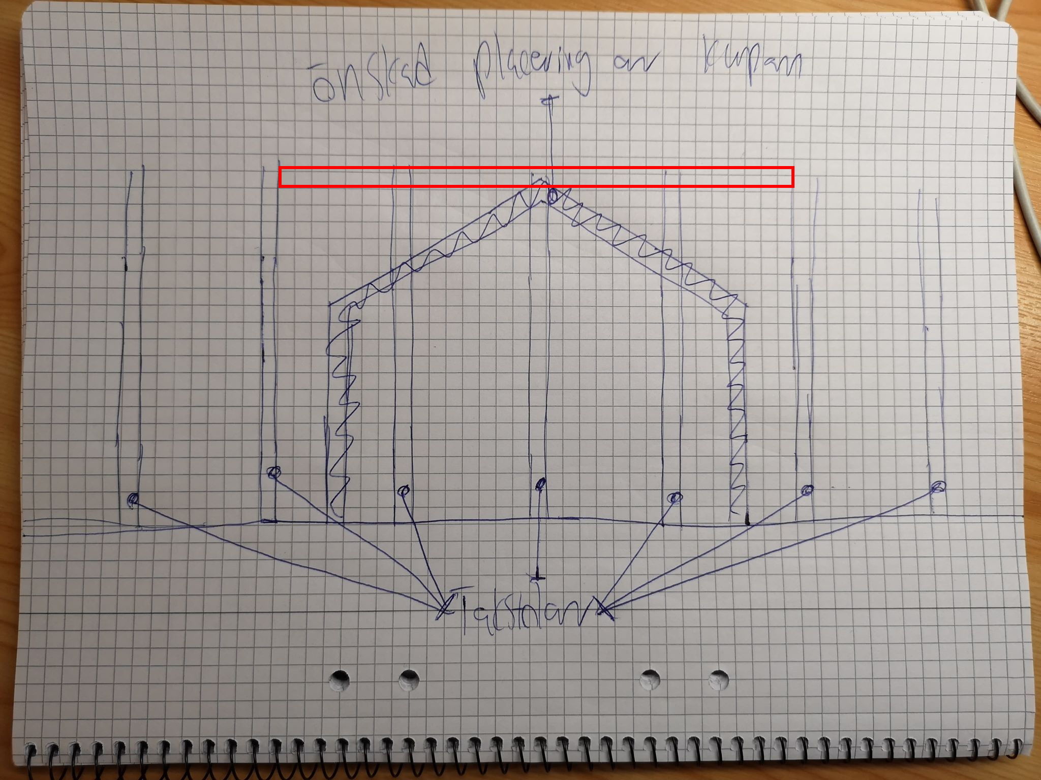 Så som takstolarna är placerade så kommer kupornas väggar inte att sammanfalla med takstolarna. Kupornas väggar kommer hamna mitt mellan takstolarna. Visst skulle man kunna göra kuporna 4 meter breda för att få det att sammanföll bättre, men frågan är ifall det inte skulle bli konstigt med så stora kupor på vårt lilla hus.