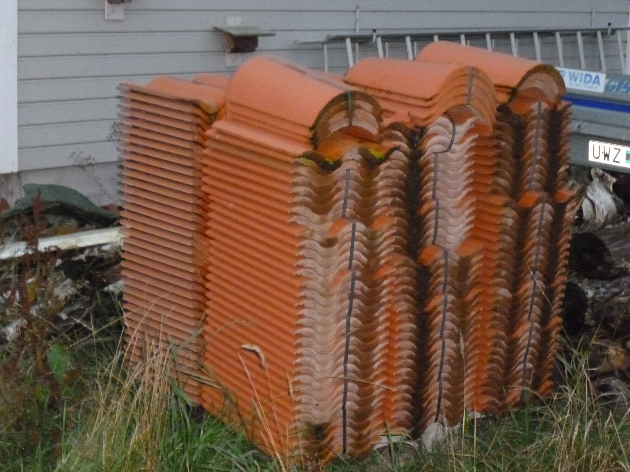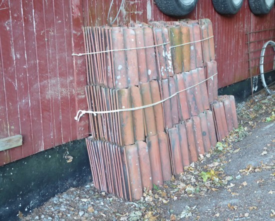 Har 7 lastpallar med lertegel-taktegel. De skall användas om några år.