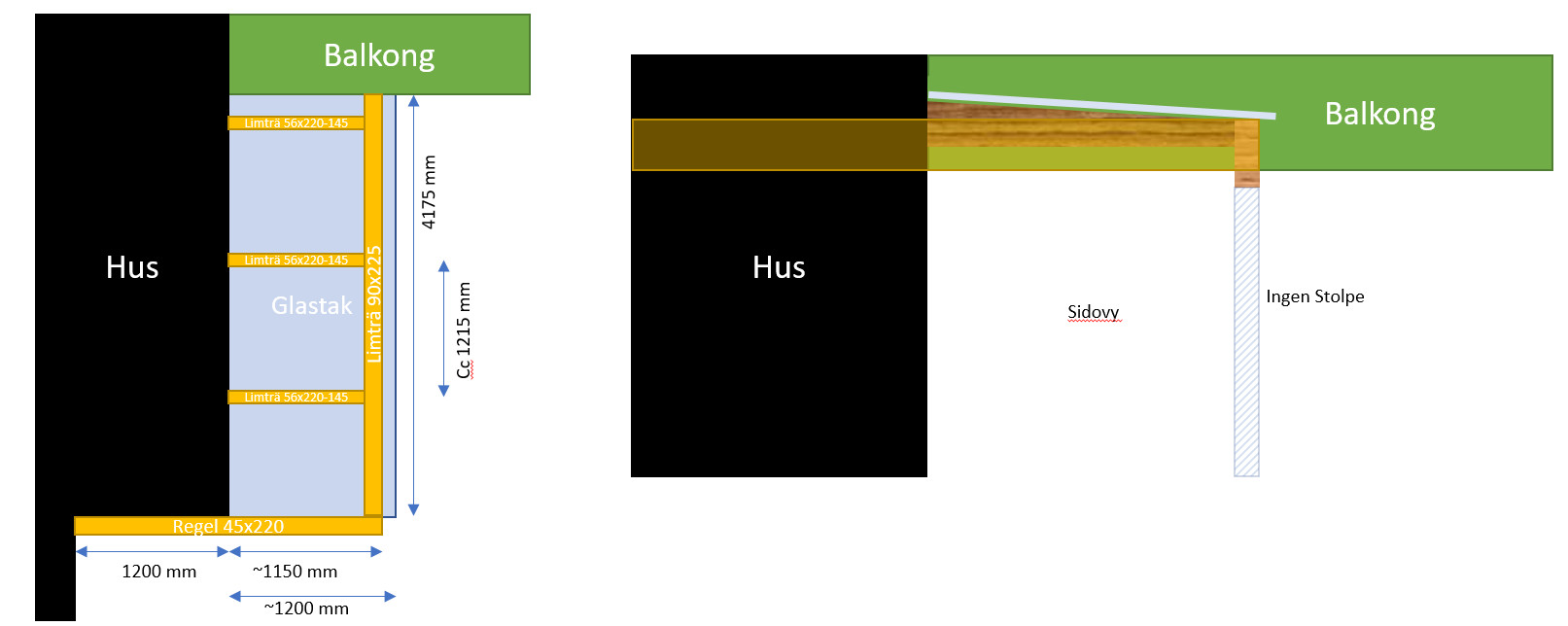 Jag planerar att bygga ett skärmtak och har lite funderingar kring lasterna när jag skippar en stolpe i hörnet.