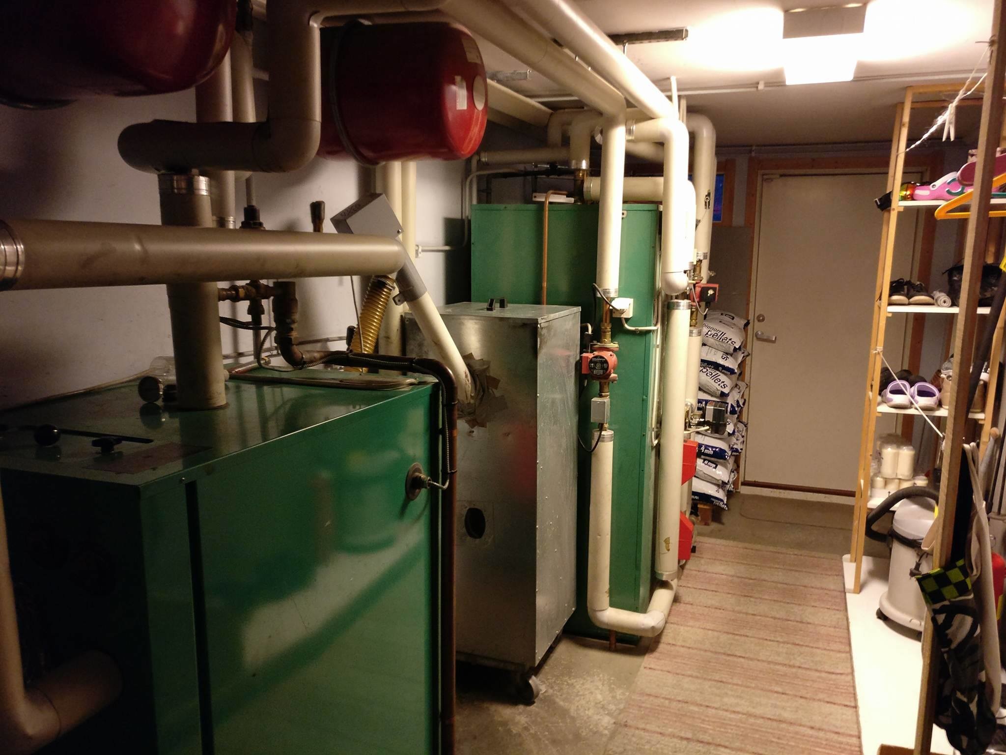 Uppvärmningssystem: Vedpannan med pelletsbrännare och el.