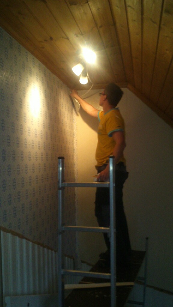 Tapetsera väggen i trapphuset