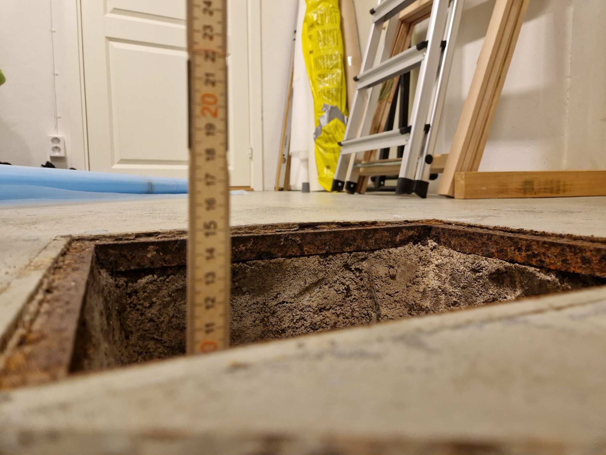 Vi har en rensbrunn i ett källarutrymme där vi mätt upp över 1000 Bq/m3 och behöver därmed täta locket. Såhär ser det ut :