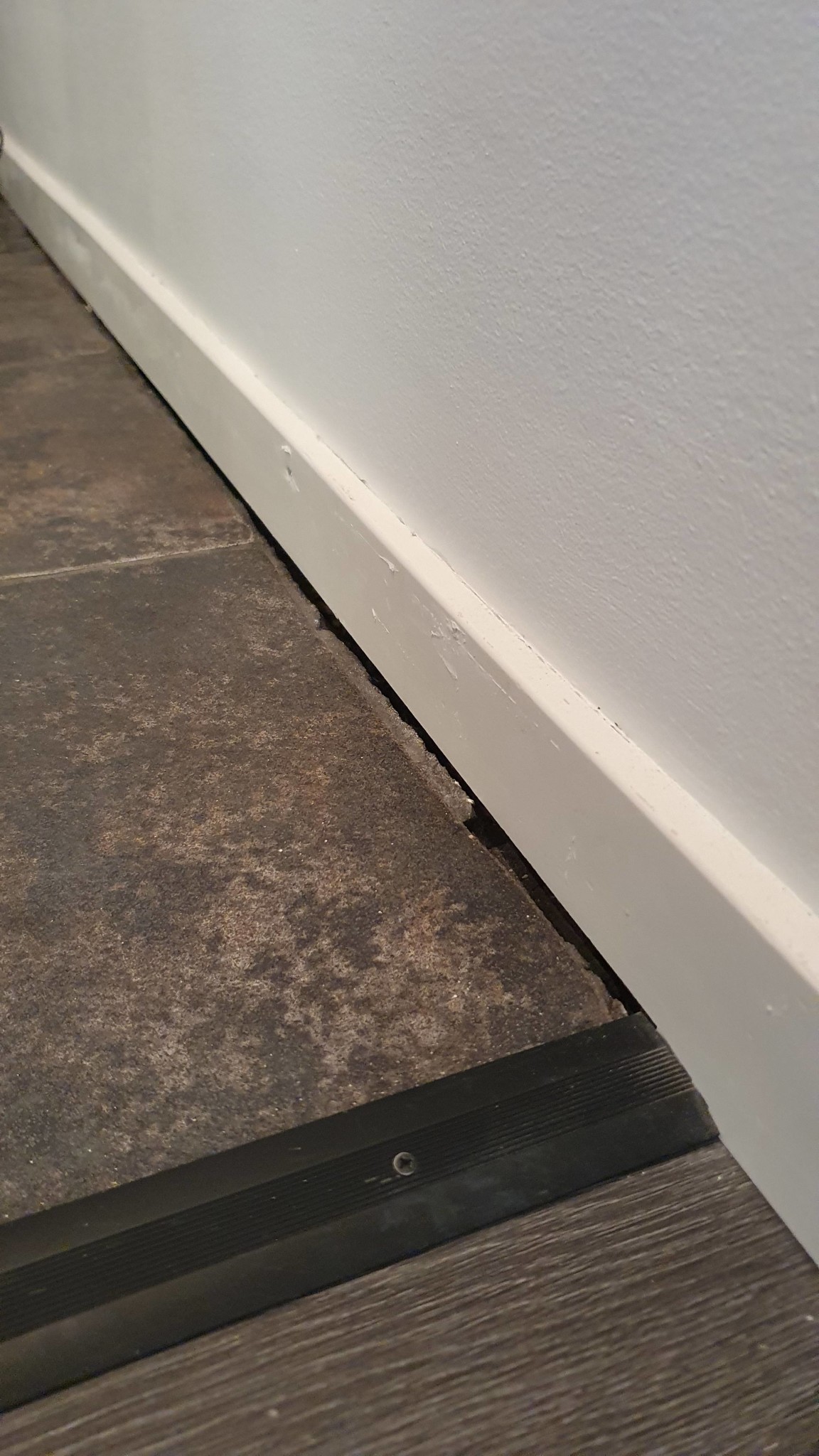 Vi har ett klinkergolv i hallen som är illa lagt mot vägglisten, det är en glipa emellan samt att det drar kalluft från springan. Tror att ventilationen drar tjuvluft därifrån då draget ökar om man drar frånluften på max.