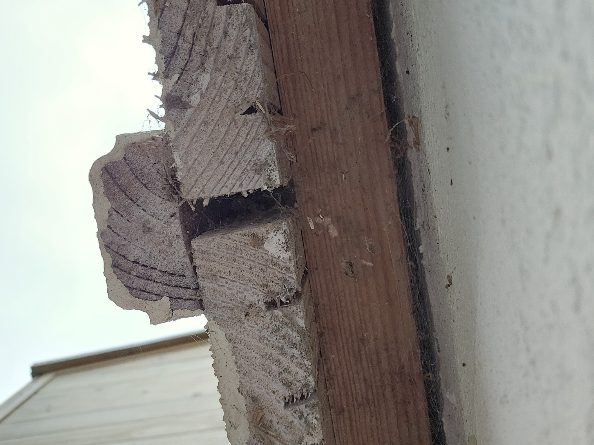 Jag misstänker att ett till sätt för spindlar att komma in är runt hela huset på nedersta delen av träpanelerna. Hur kan jag täta mot spindlar samt låta luften flöda. Bifogar foton.