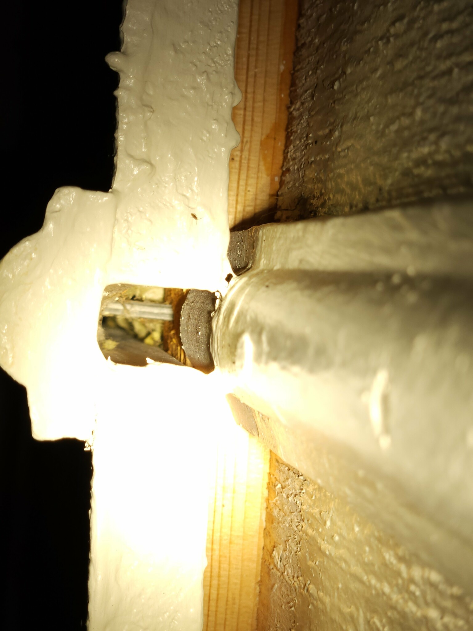 Försiktigt trycka i LITE fogskum? Inte så att panelen sprängs... Det kan expandera både uppåt och nedåt så borde inte vara någon fara? Stoppar det mot insekter eller kommer de äta upp det?