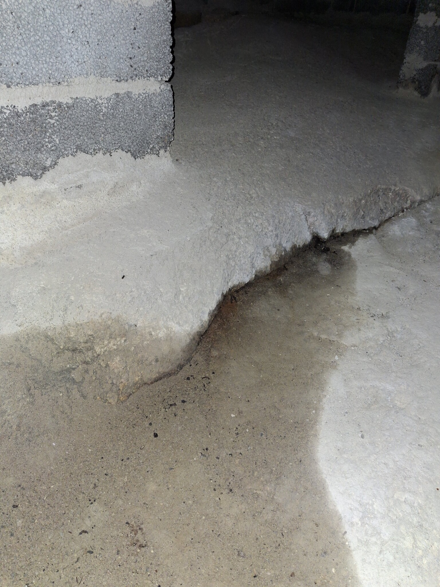 Utan att veta förutsättningarna så skulle jag börja fundera på om sprickan går dit och det där står vatten som trycker in.