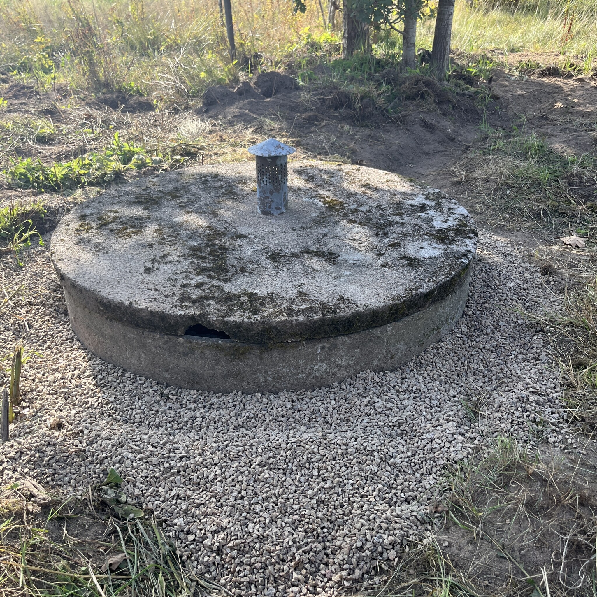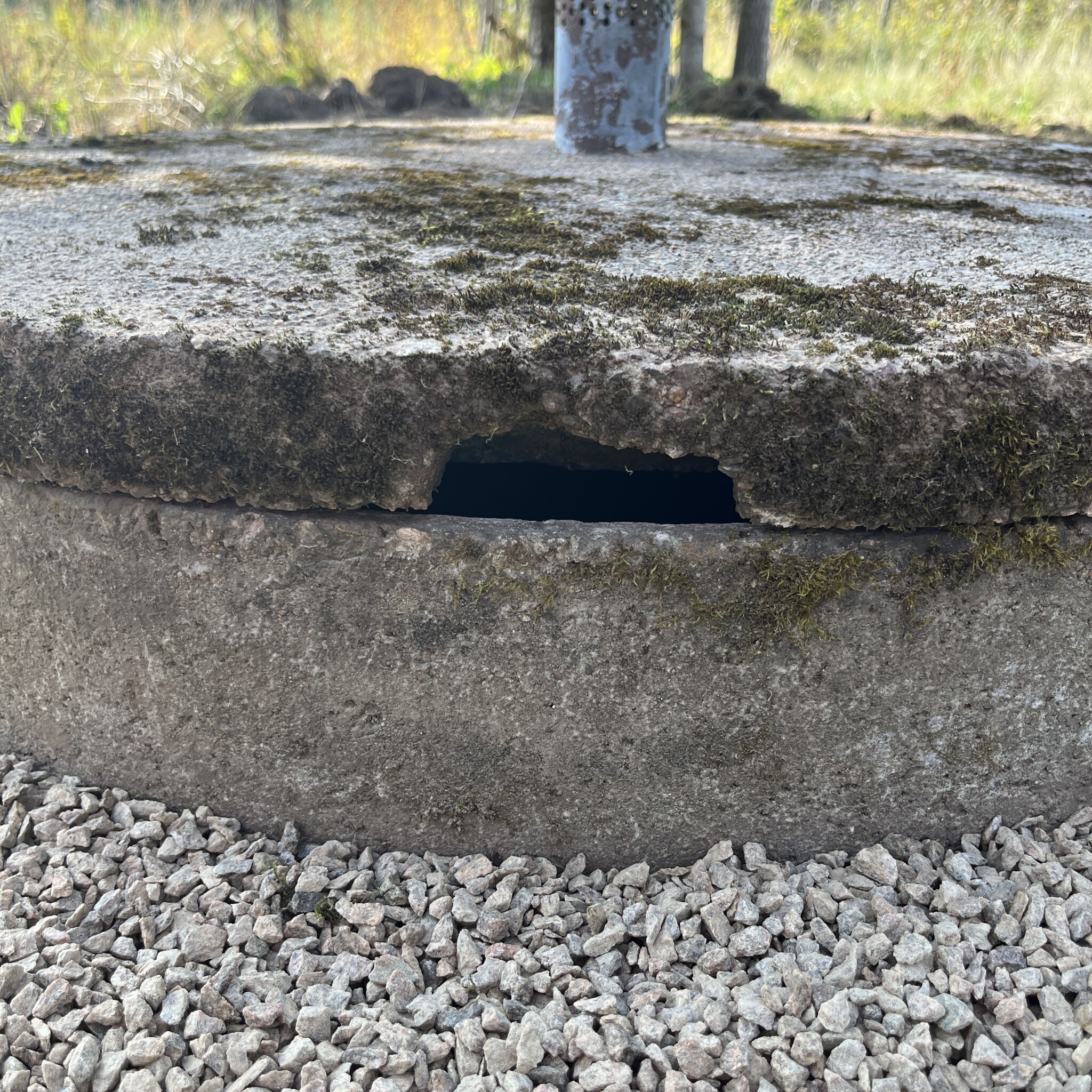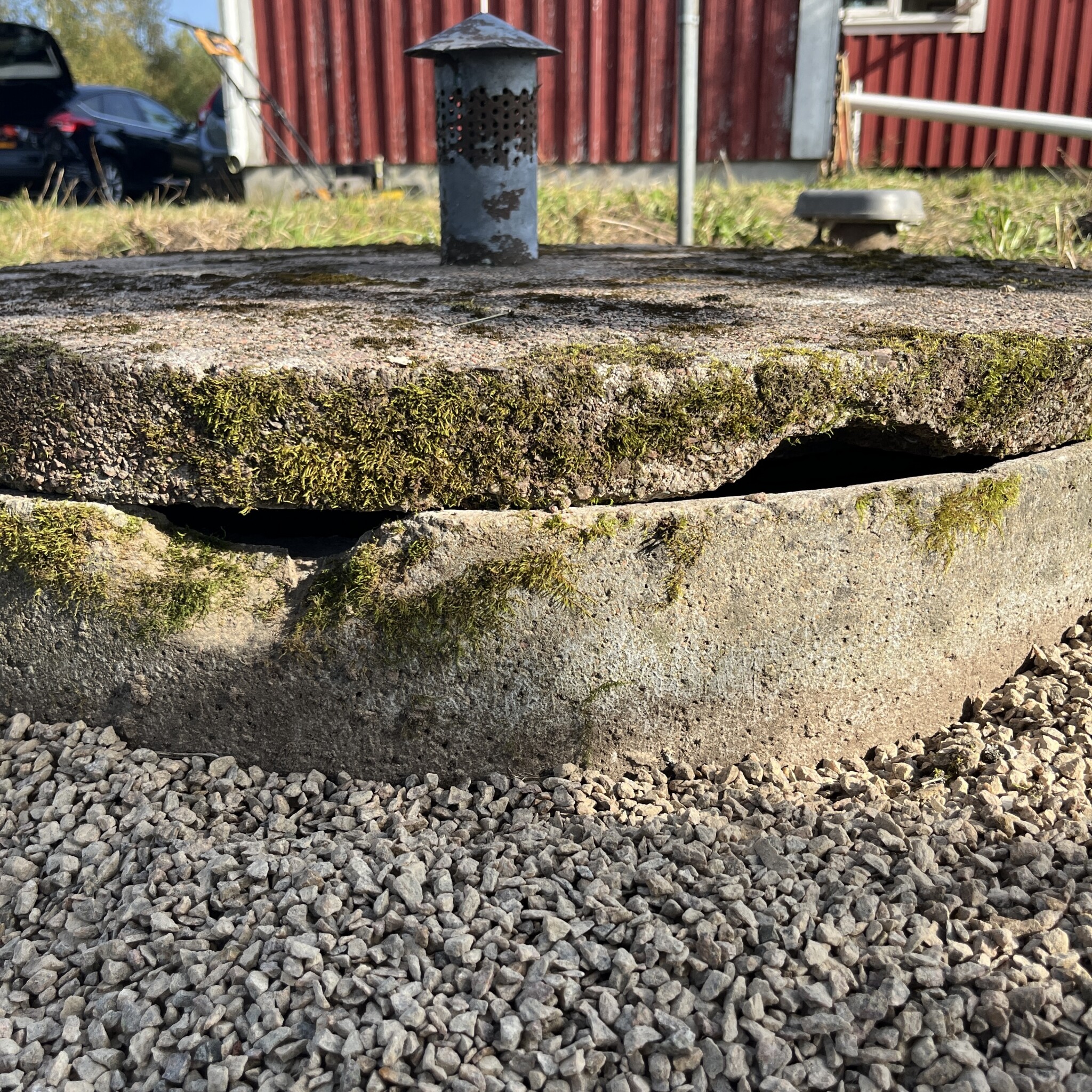 Vi har en grävd brunn till fritidshuset och har rensat runt röret och spolbil har spolat och sugit rent. Såg då att det inte är tätt runt brunnslocket. Dels är det liten skada och dels är det två infasningar för att få grepp att lyfta av locket.