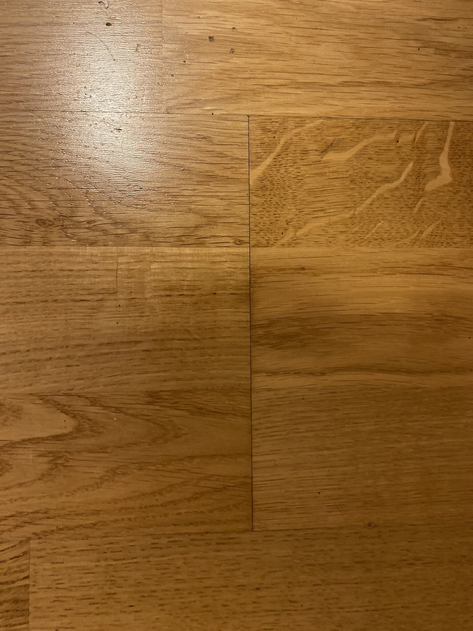 Se bilder där det är rätt djupa ”hack” i golvet, det blänker mkt och känns och ser väldigt plastigt ut, är det verkligen parkettgolv då?