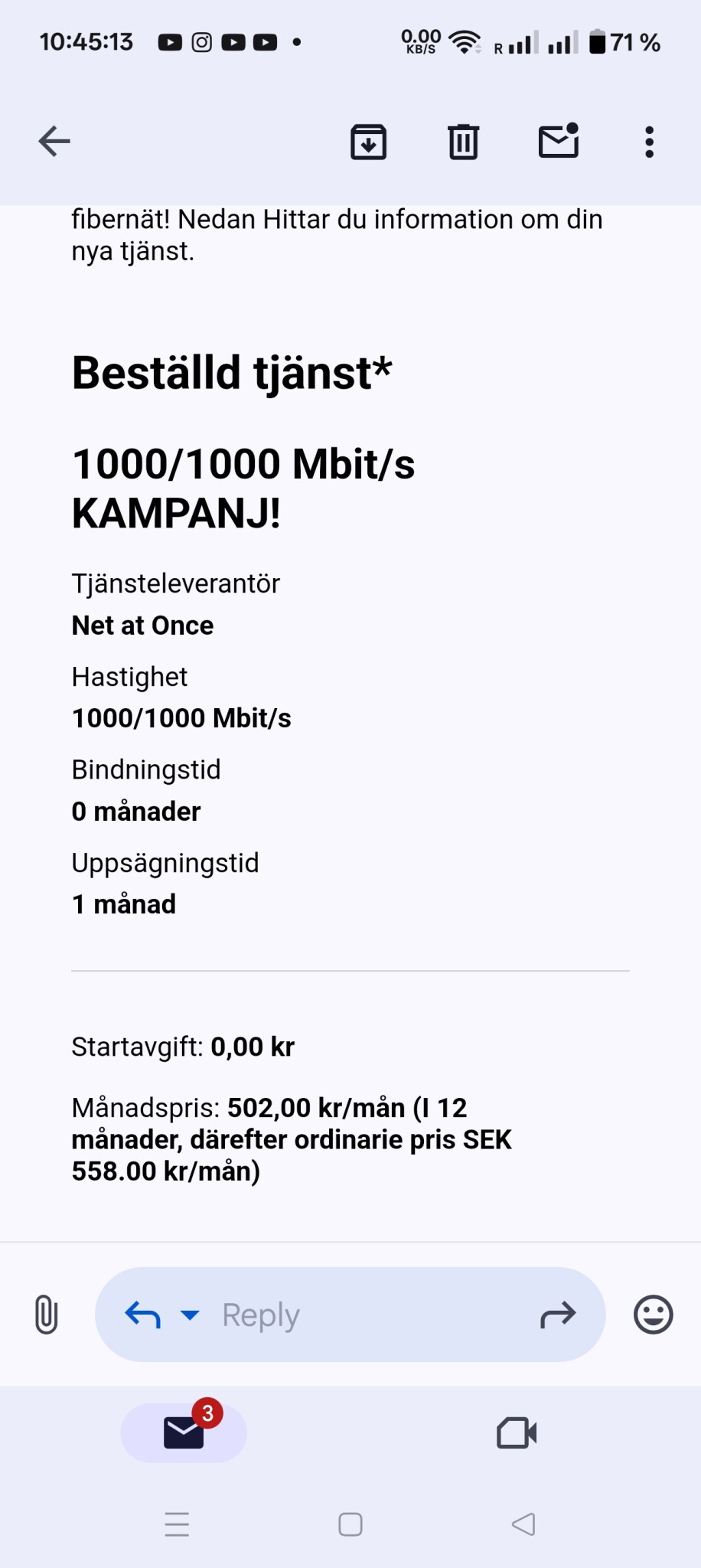 Tror jag tar och byter till Telias mobila bredband för 199kr/mån...tack o adjö fiber!
