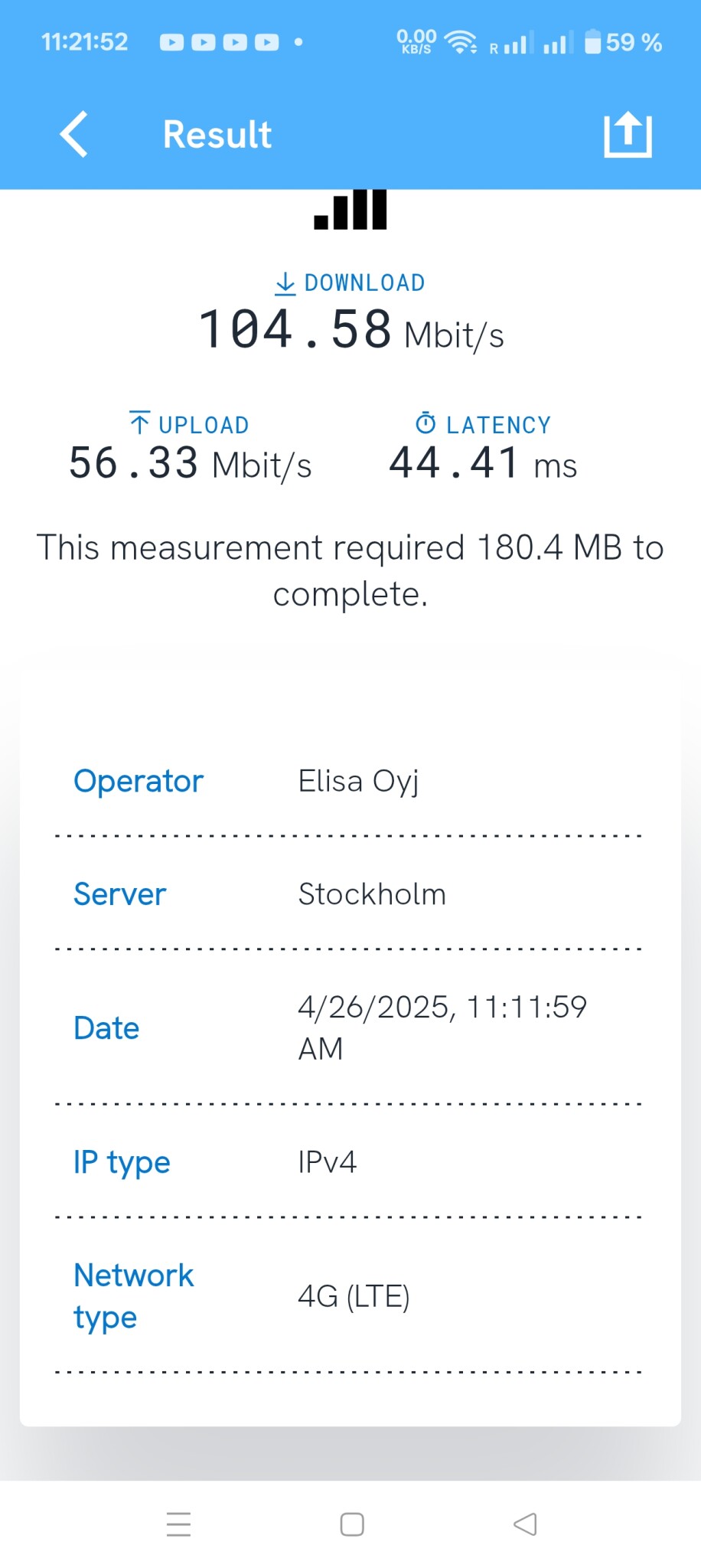 Du har ju inte råkat mäta mobilnätet? Fast det är betydligt bättre hos mig ändå. 😀