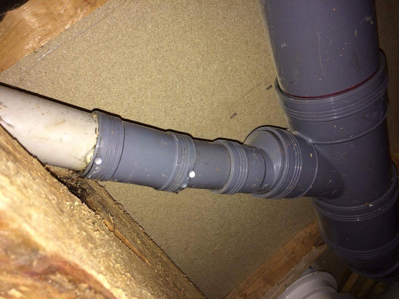 Min spontana tanke när jag ser bilden är att dte vita röret kanske inte är ordentligt intryckt. Eller om där nu är en övergångsnippel som skall reducera från det gråa röret't troliga 50mm, till det vita som väl troligen är 40 mm, och nippeln blivit deformerad vid monteringen.