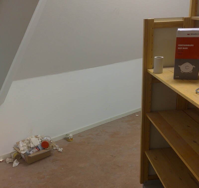 Jag är och grejar lite i en kontorsfastighet, som nyligen var helt utrymd på hyesgäster, men nu har verksamheter börjat flytta in igen. Medan mer än hälften av huset fortfarande är tomt och byggjobb, renoveringar, uppfräschningar pågår lite överallt.