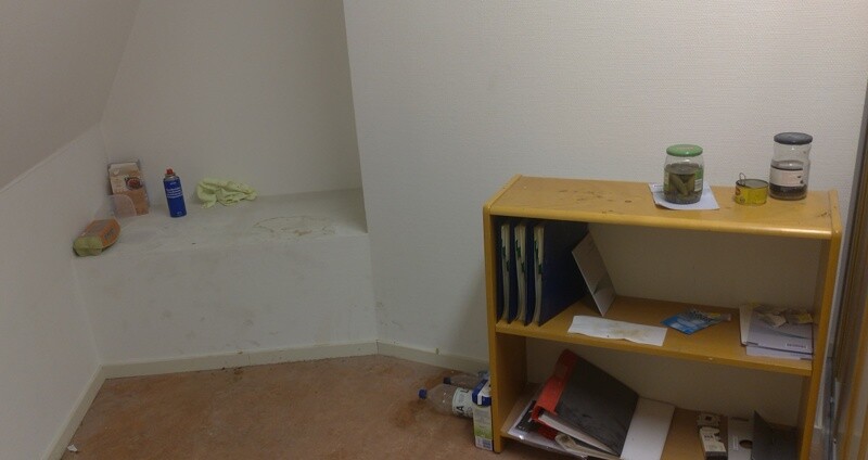 Jag kan i princip slå vad om att här har (troligen utländska) byggjobbare sovit.
