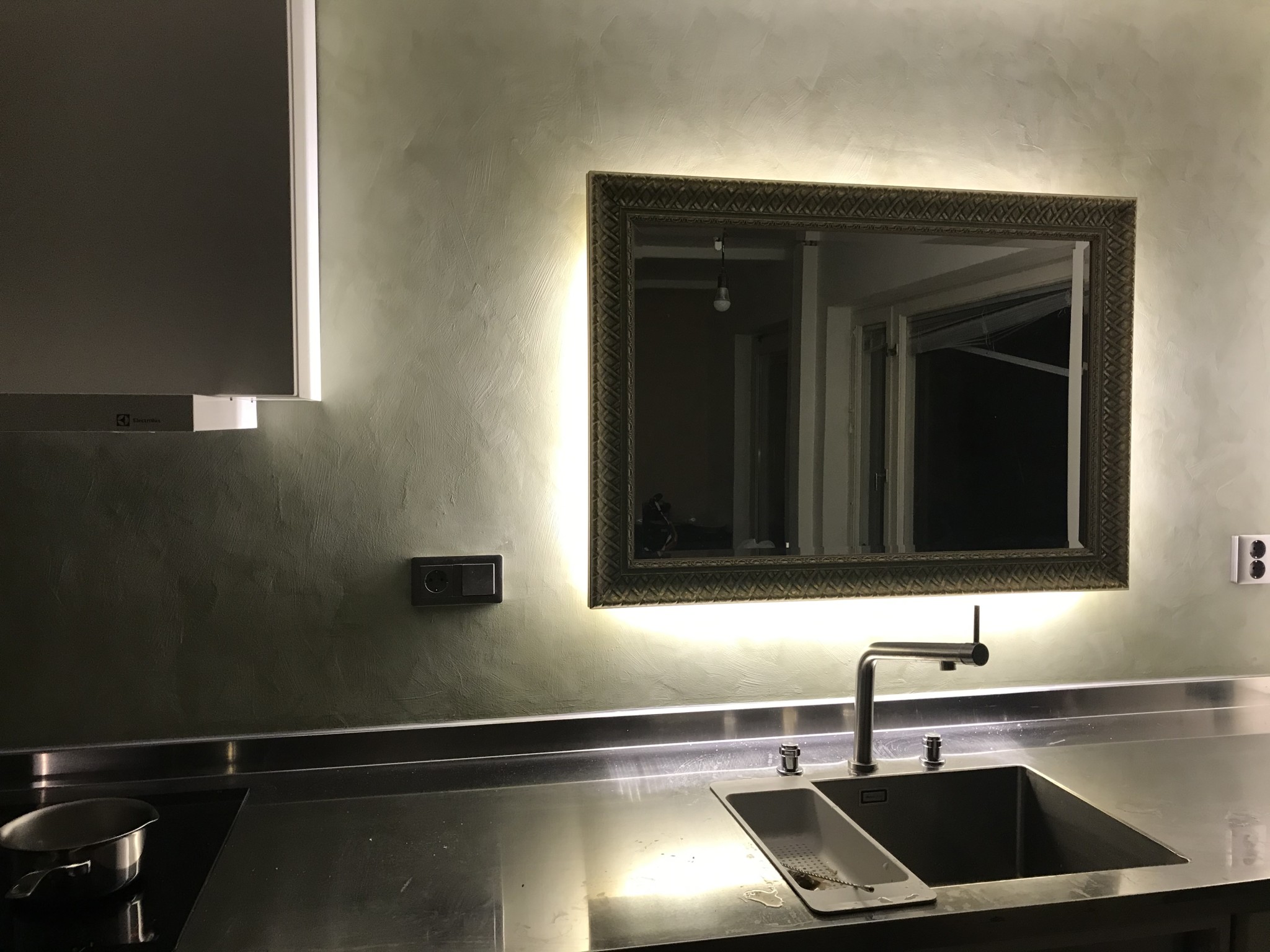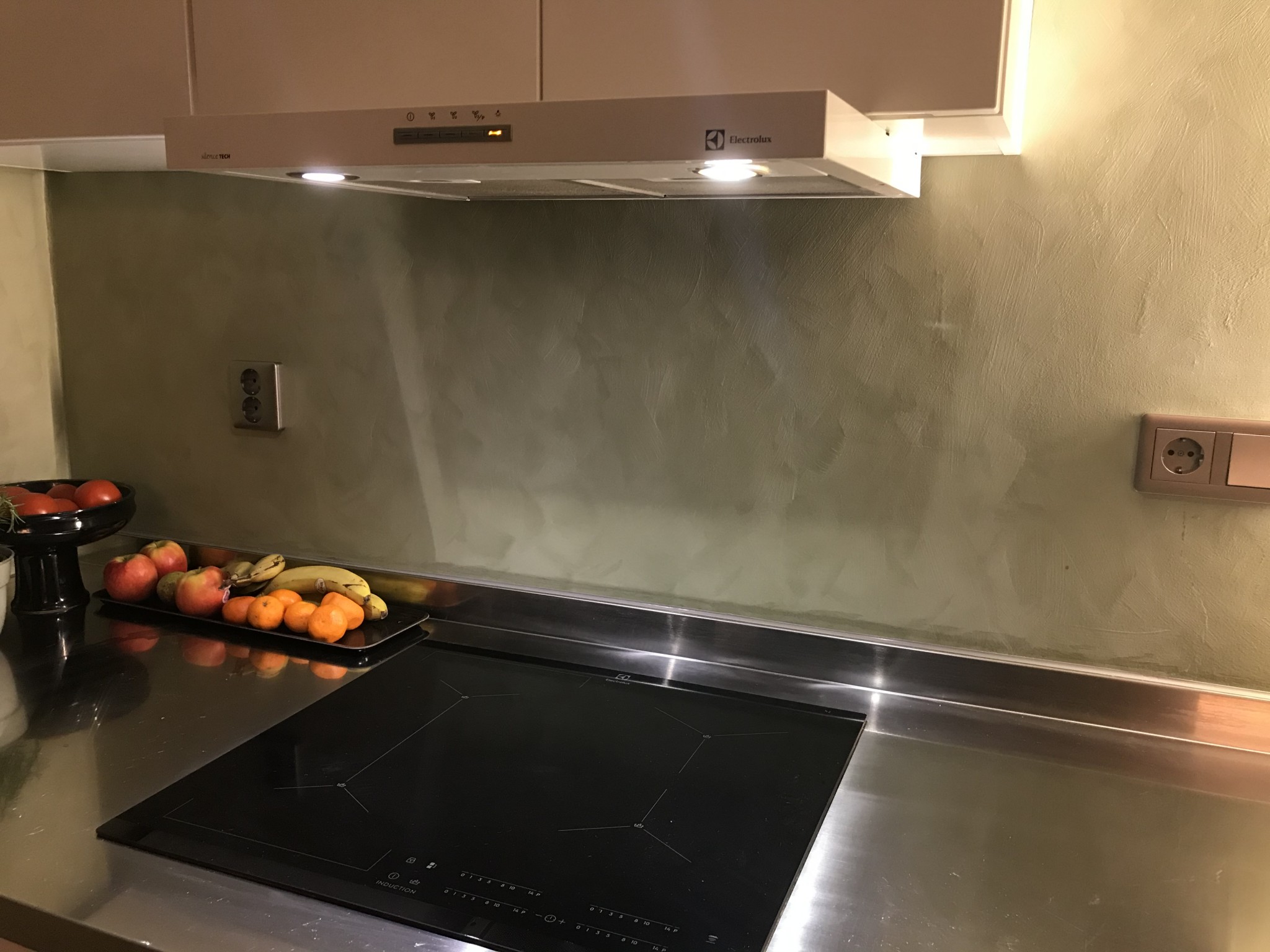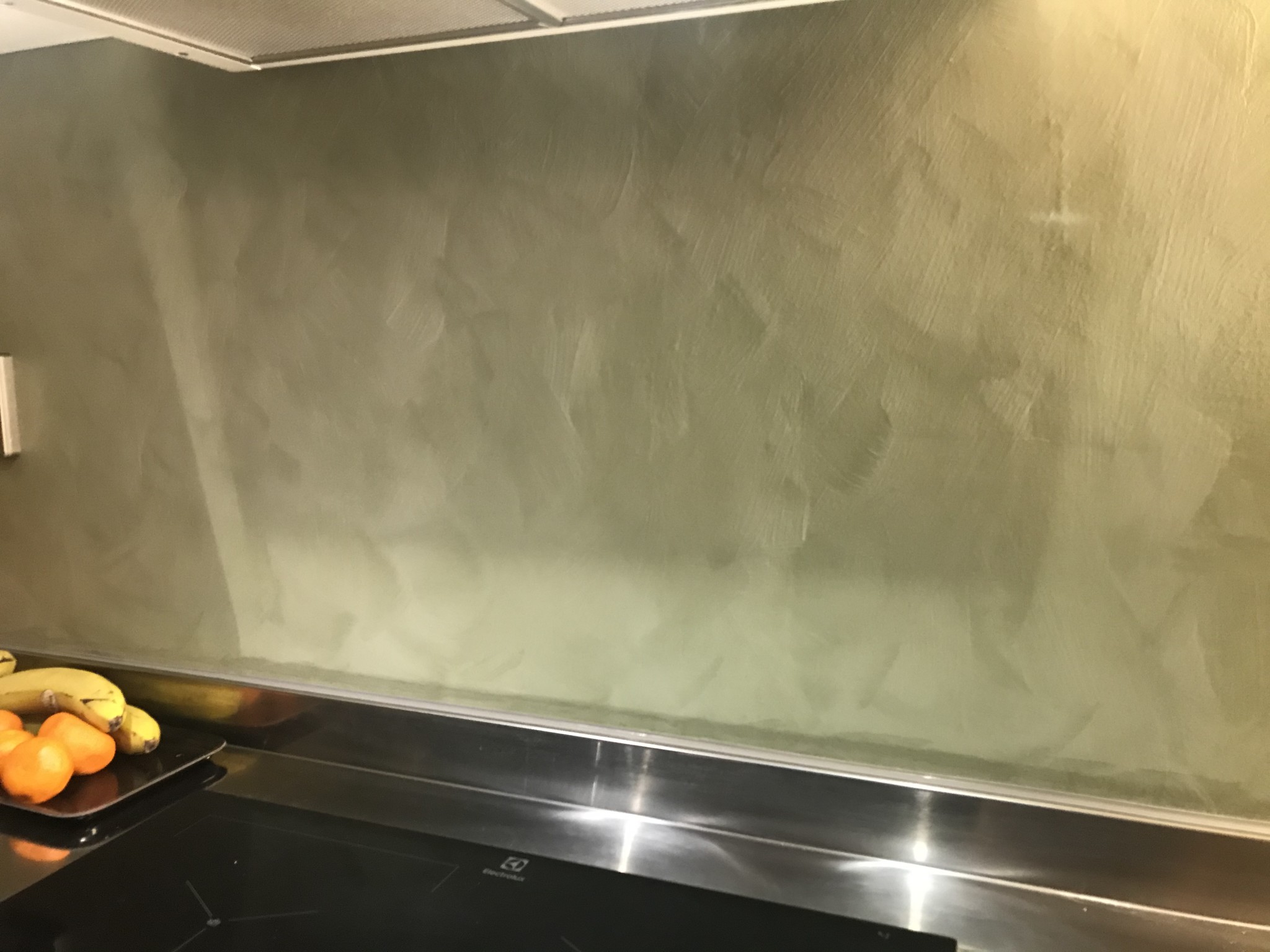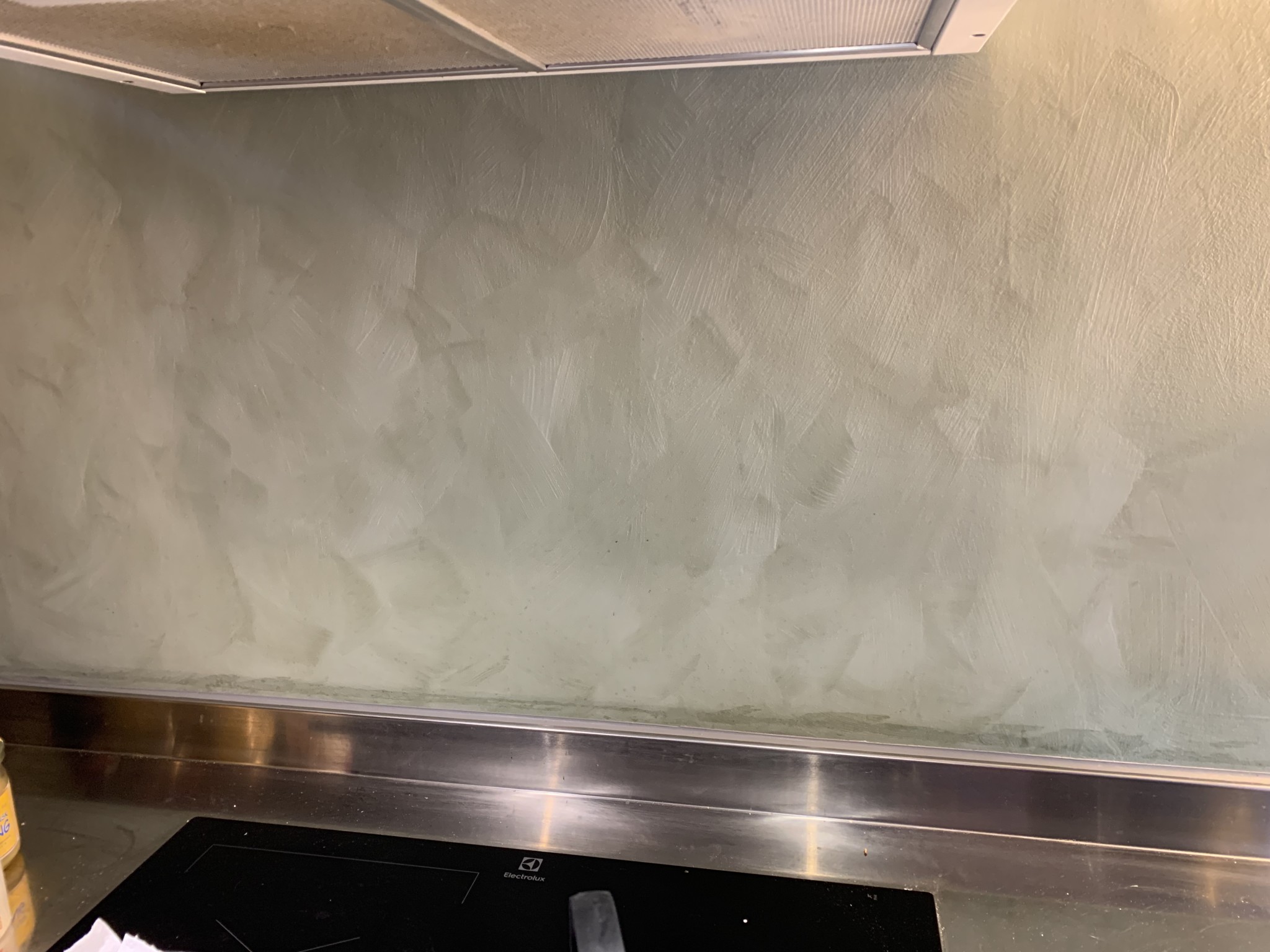 Kul för visat intresse. Ja två hela väggar är med kalkfärg inklusive bakom spisen. Fungerar förvånansvärt bra än så länge men det kräver att man målar minst två lager Jontun sealer efteråt. Kommer nog att fortsätta måla ett lager Sealer på väggen bakom vasken och spisen varje år. Upptäcker också några rörelsersprickor men mycket små än så länge. Dessa syns väldigt lite eftersom kalkfärgen har mycket struktur... Gud vilken spännande tråd . Här kommer lite bilder.