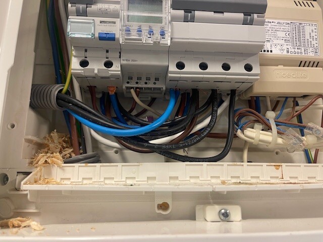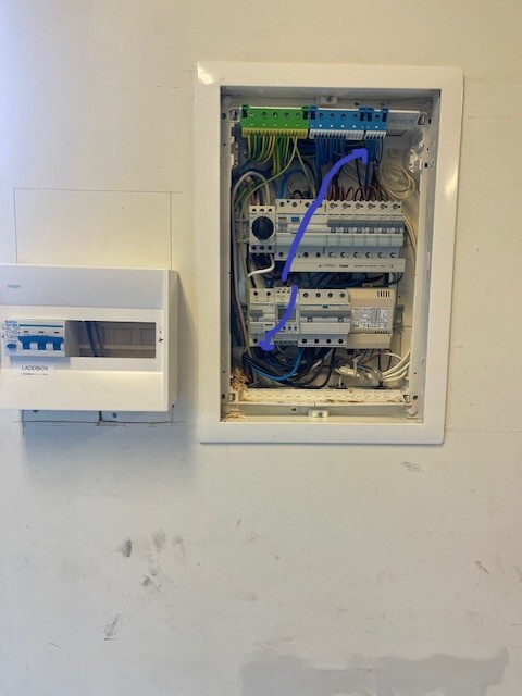 Och varför matas personskyddsbrytaren till laddaren med till synes 1,5 mm²-trådar? Varav åtminstone nollan har spretande kardeler. Och varför är det till synes två utgående nollor från denna? Jordfelsbrytaren på första raden verkar fått uppgiften att agera fördelningsplint för inkommande nolla.E elmont skrev: