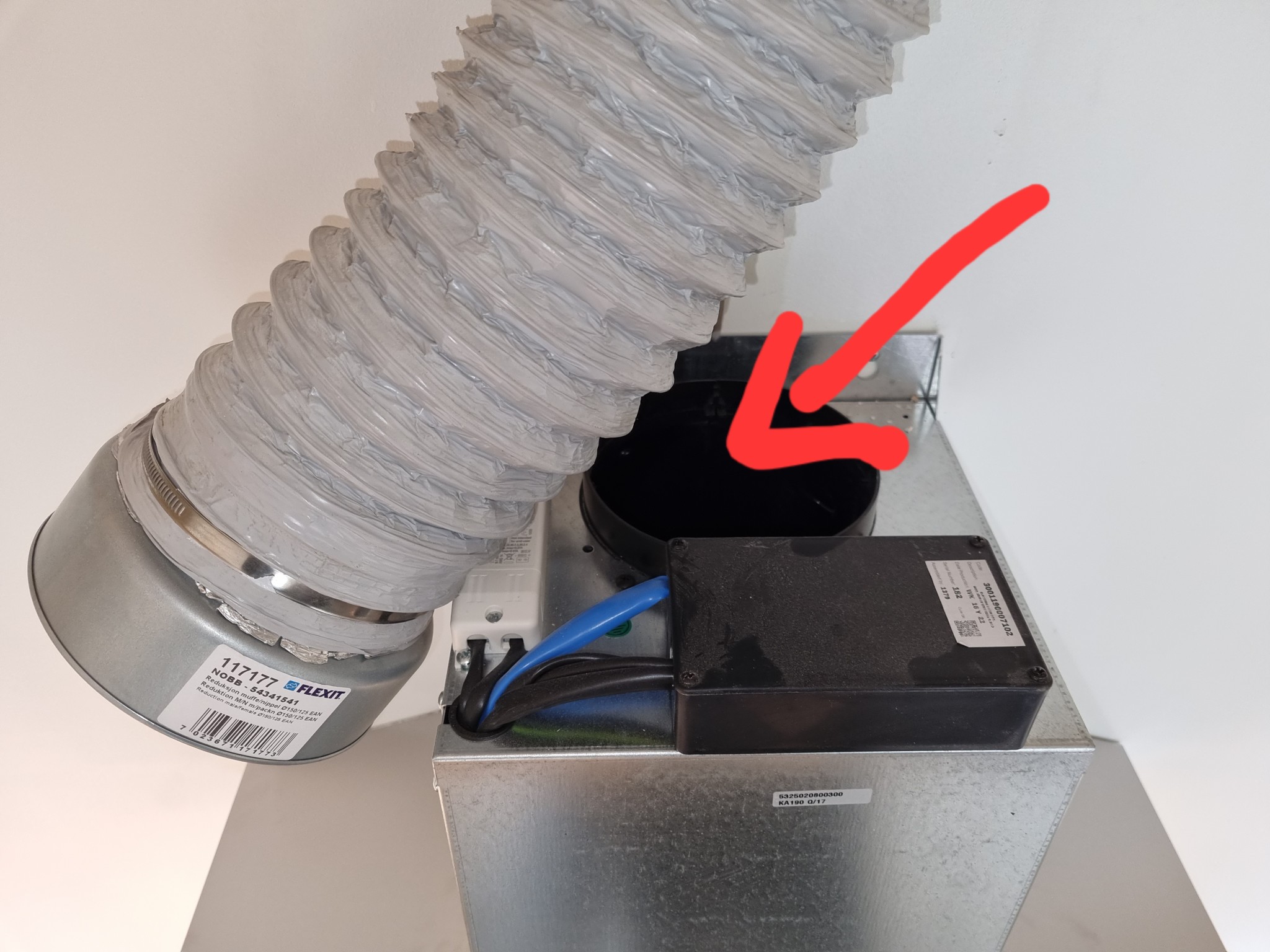 Plocka bort kåpan så ser du troligt en "slang" som är anslutningen mellan fläkt och imkanalen i väggen/taket.