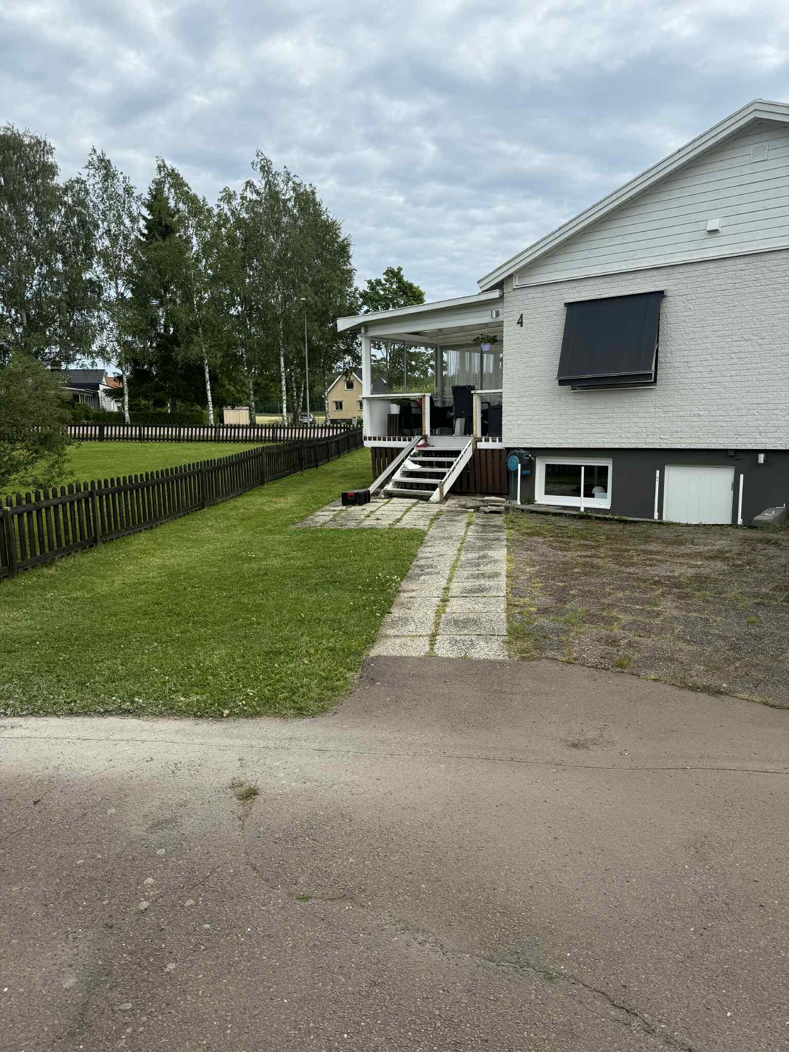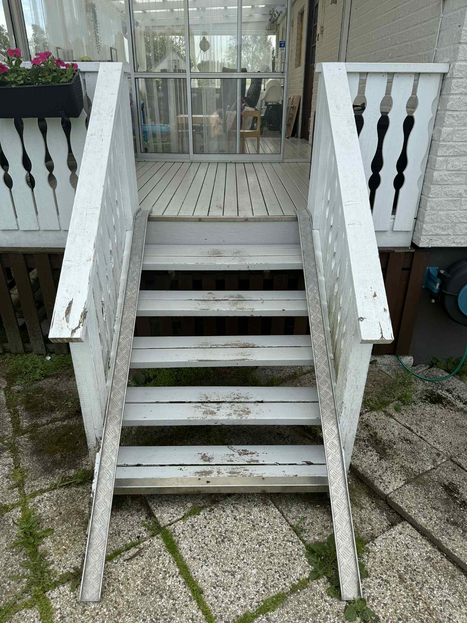 Det som räddade oss i efterregleringen med försäkringsbolaget var att det fanns tak över trappen, även om taket inte hjälpte mot regnet.
