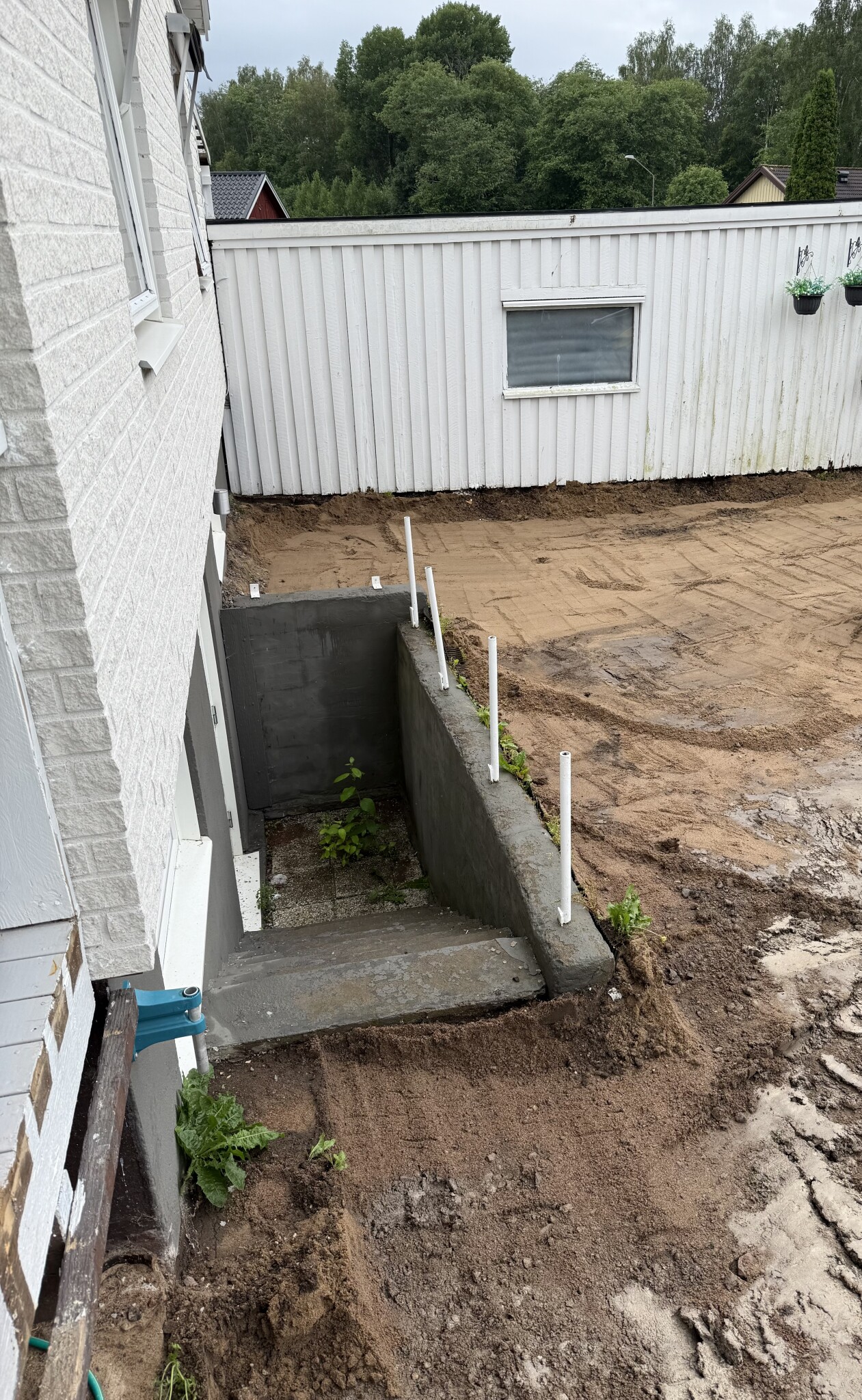 Jag har en källartrappa liknande din. Mitt hus är dock från -49, ditt ser ut att vara nyare. Spygatten i källartrappan är helt paj men grus och sten lyckas leda bort det lilla vatten som letar sig dit. Har en en trappa ovanför som leder till köksingången + lite takutsprång. Vet du om ditt avlopp från källartrappan leder bort från huset eller in i det. Min spygatt ledde till ett vattenlås inne i huset.fredrikchail skrev: