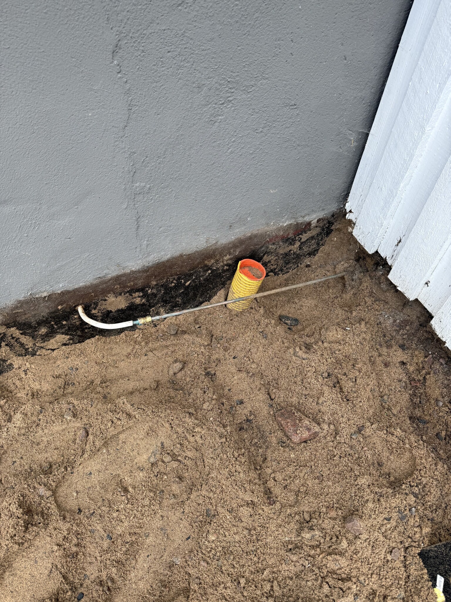 Slangen mynnar vid en källartrappa där det redan finns ett befintligt avlopp som tidigare ägare installerat efter att de haft problem med översvämning. Själv har jag aldrig haft några problem med inträngande vatten i källaren, även vid riktigt kraftiga regn och vattnet har runnit undan bra.