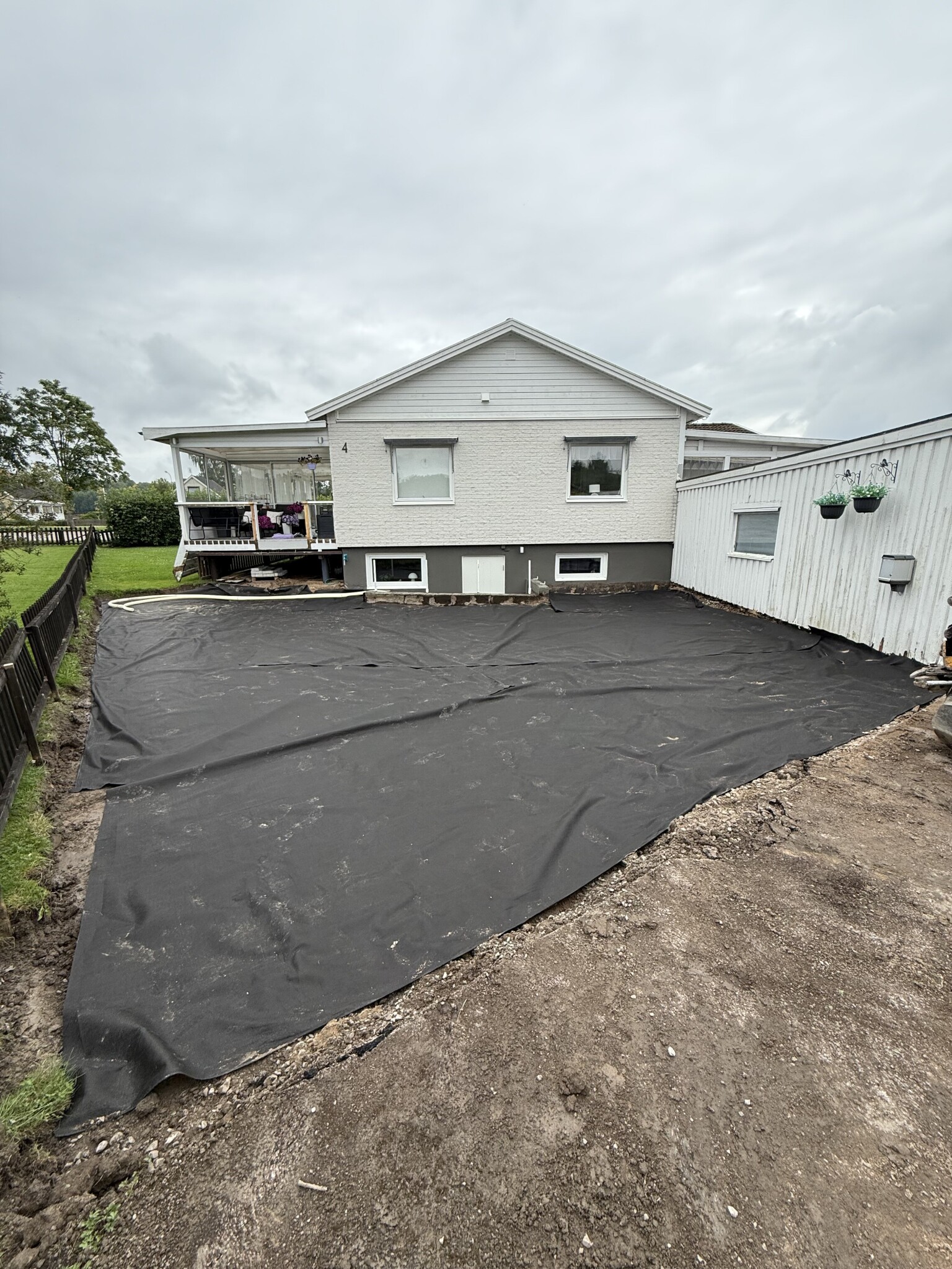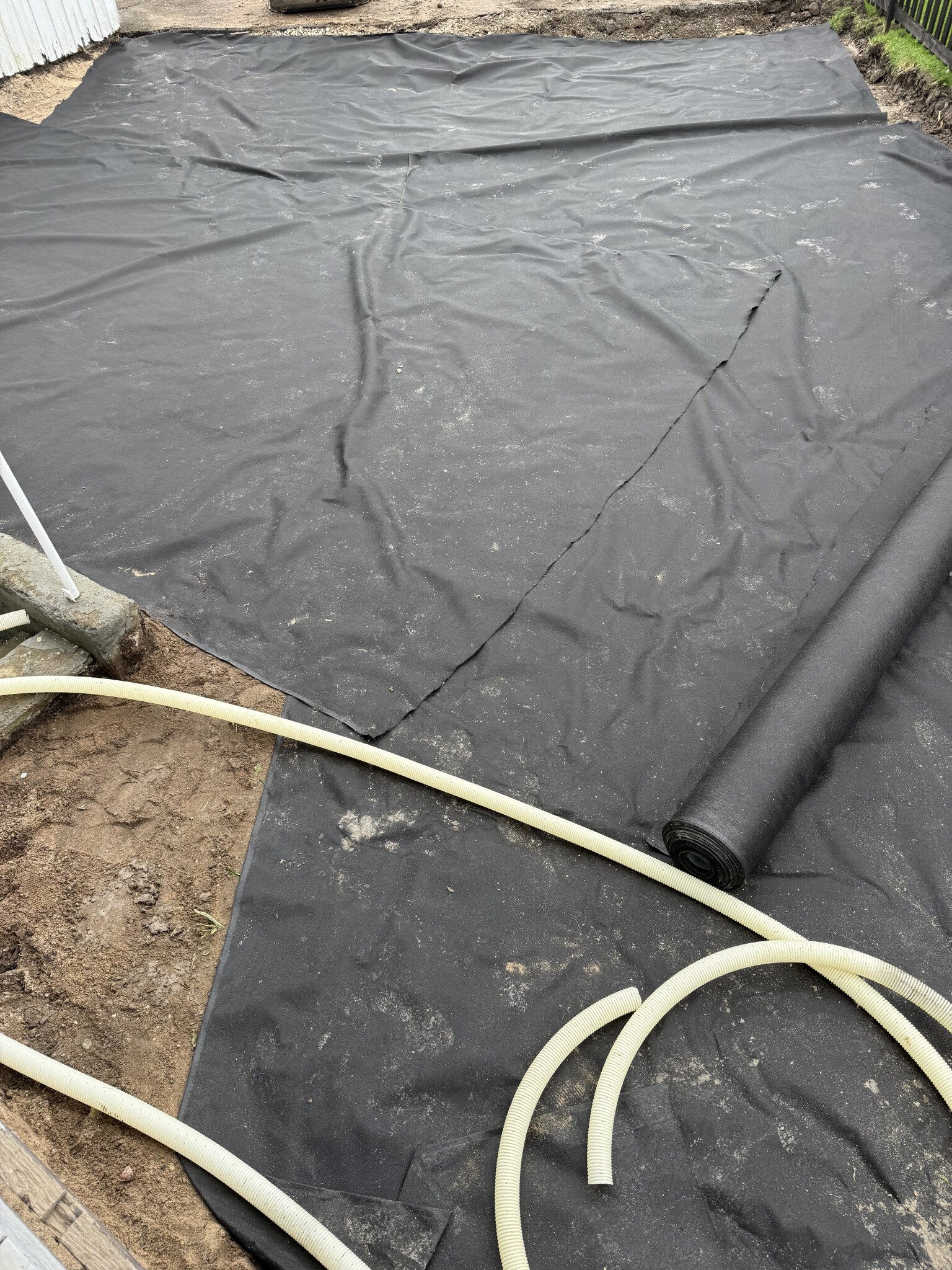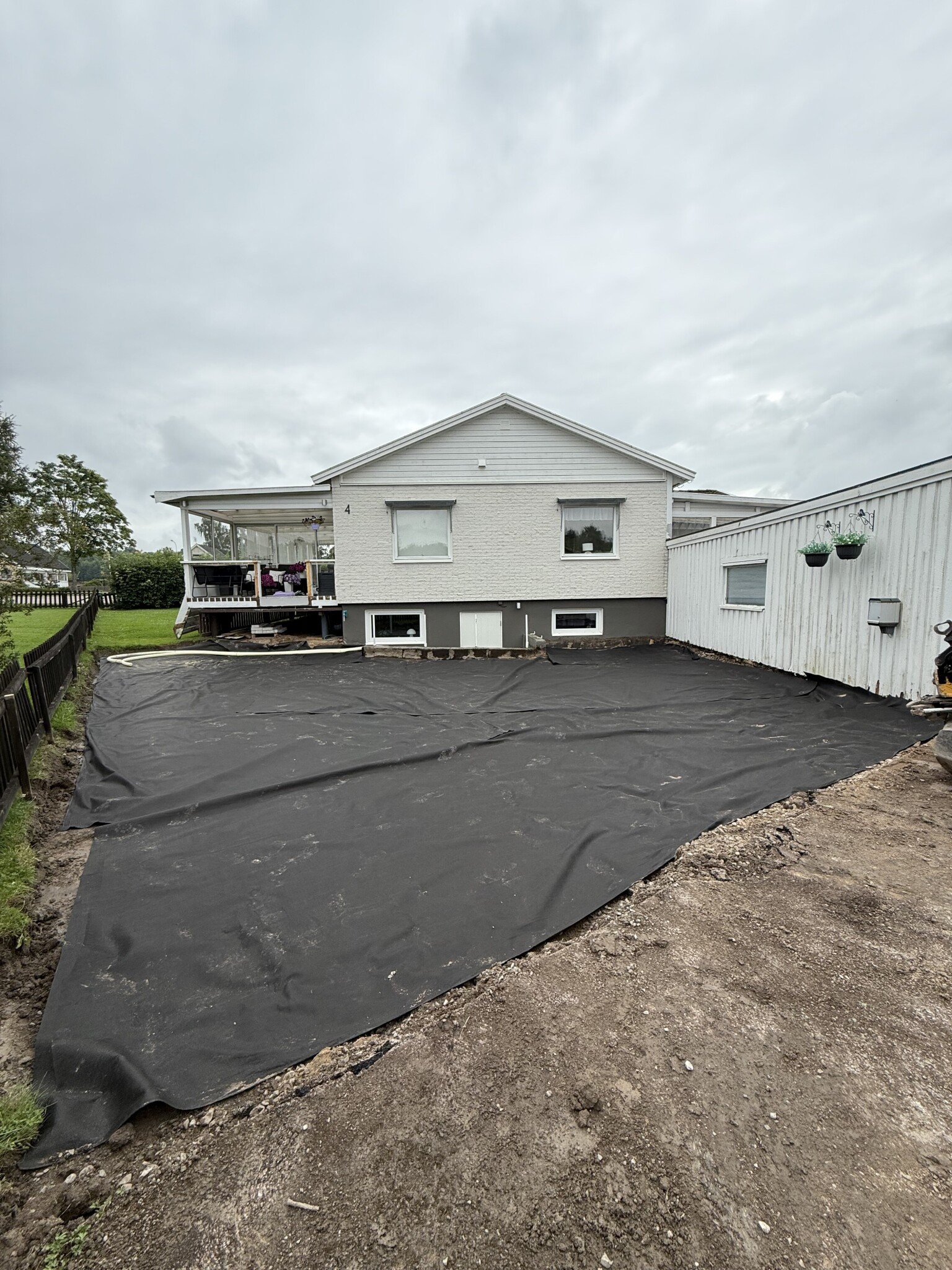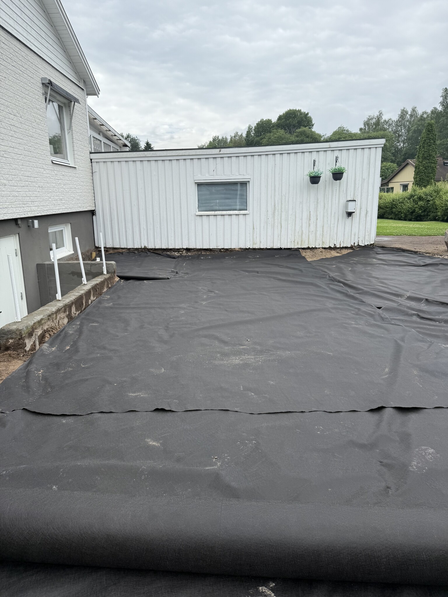 Innan bärlagret passade vi på att rulla ut markduk över hela ytan.