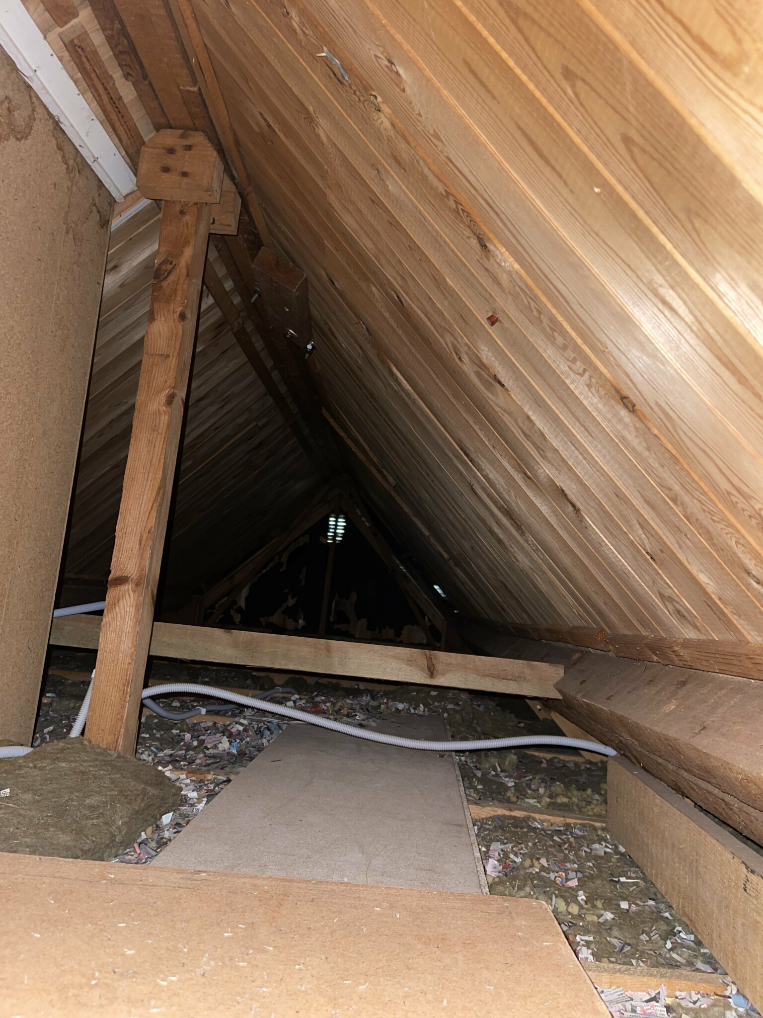 Snedtaken mellan kattvind och takvinden kommer jag inte åt från insidan så det får jag lösa i samband med att jag lägger om taket nästa sommar.