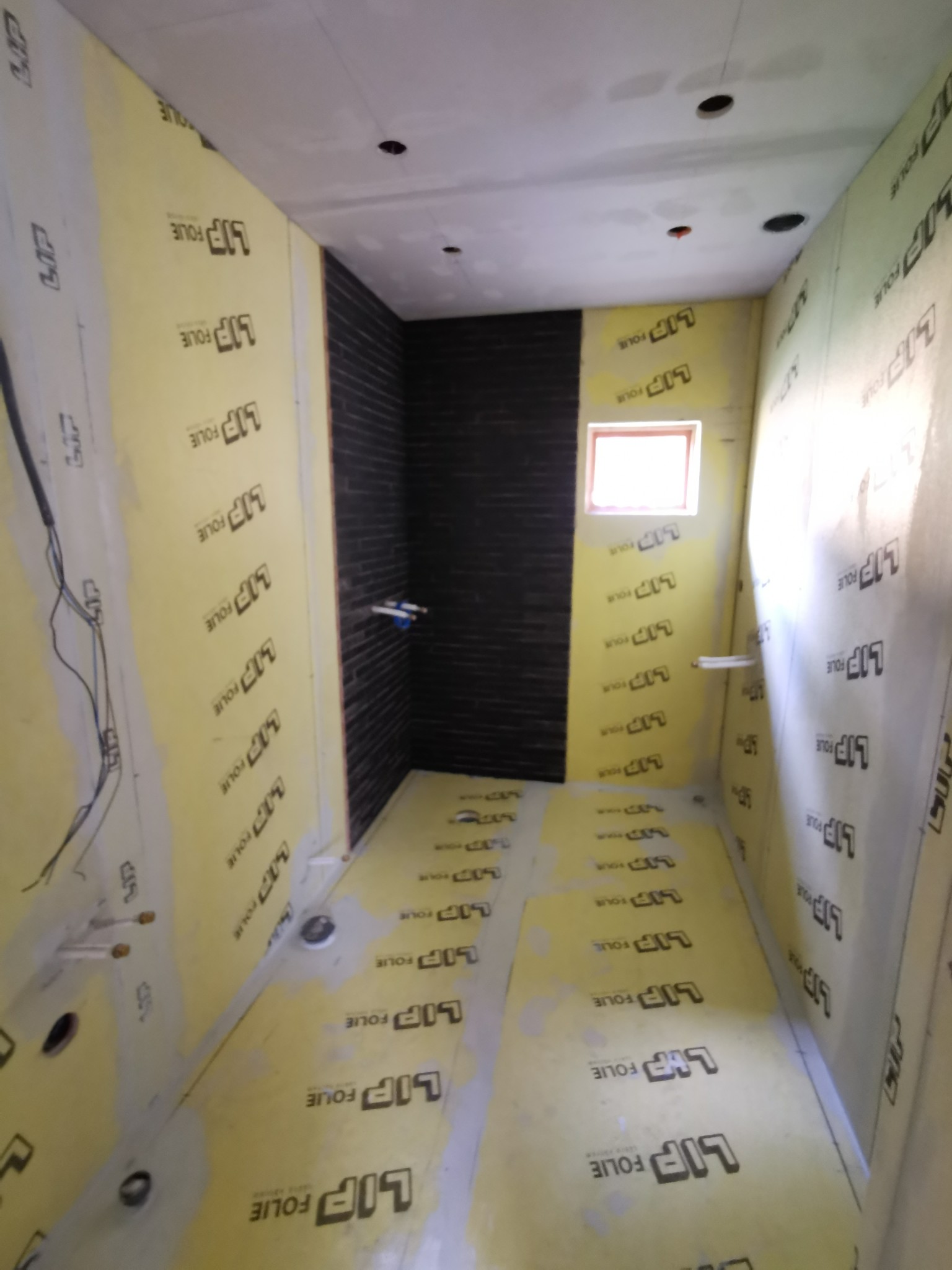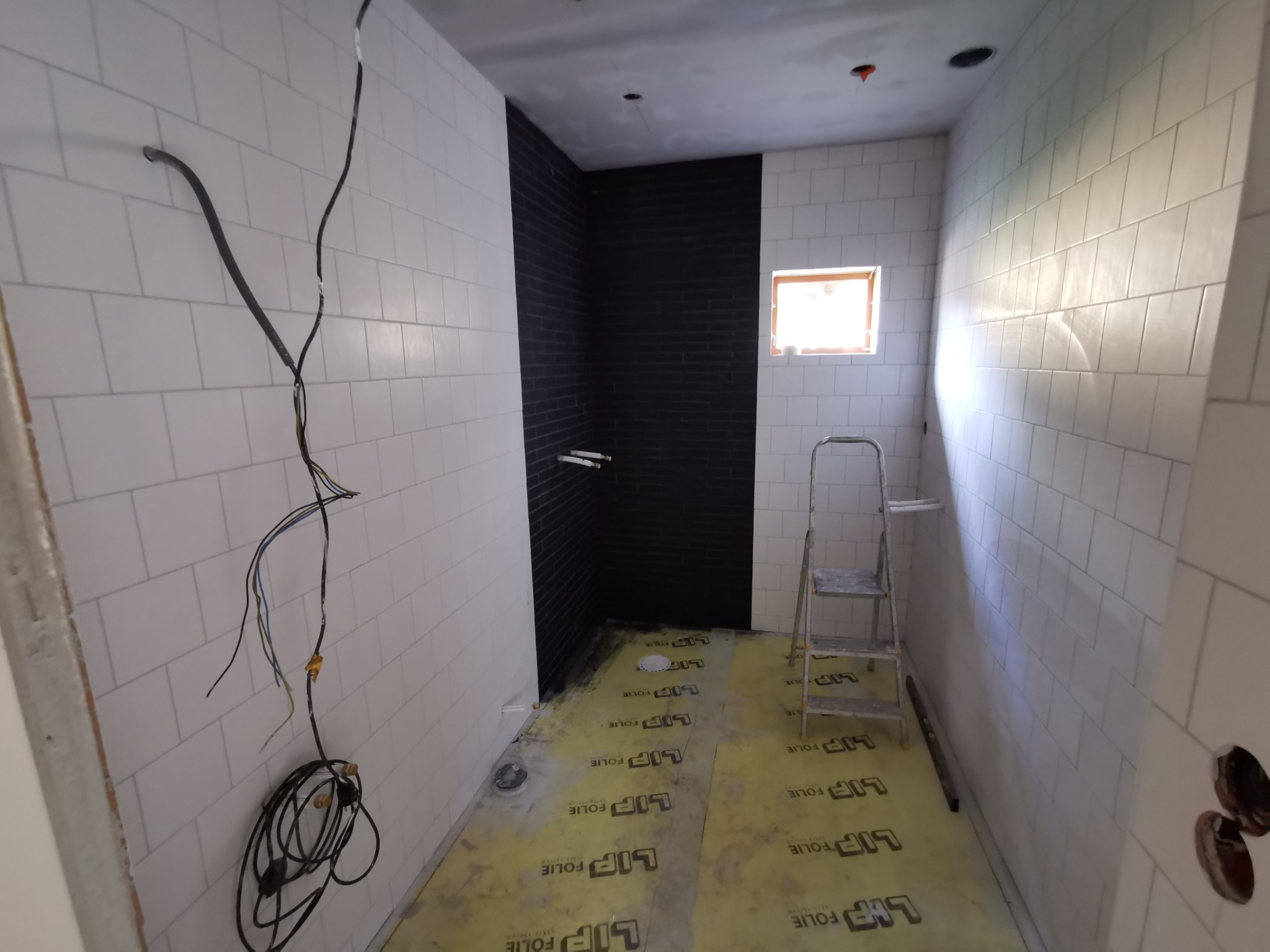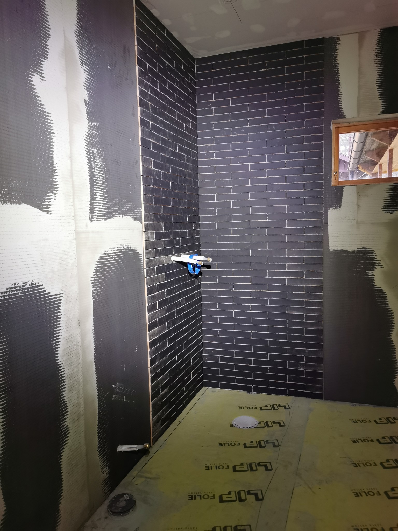 Kaklat och fogat på väggen. Imorgon blir det golv.