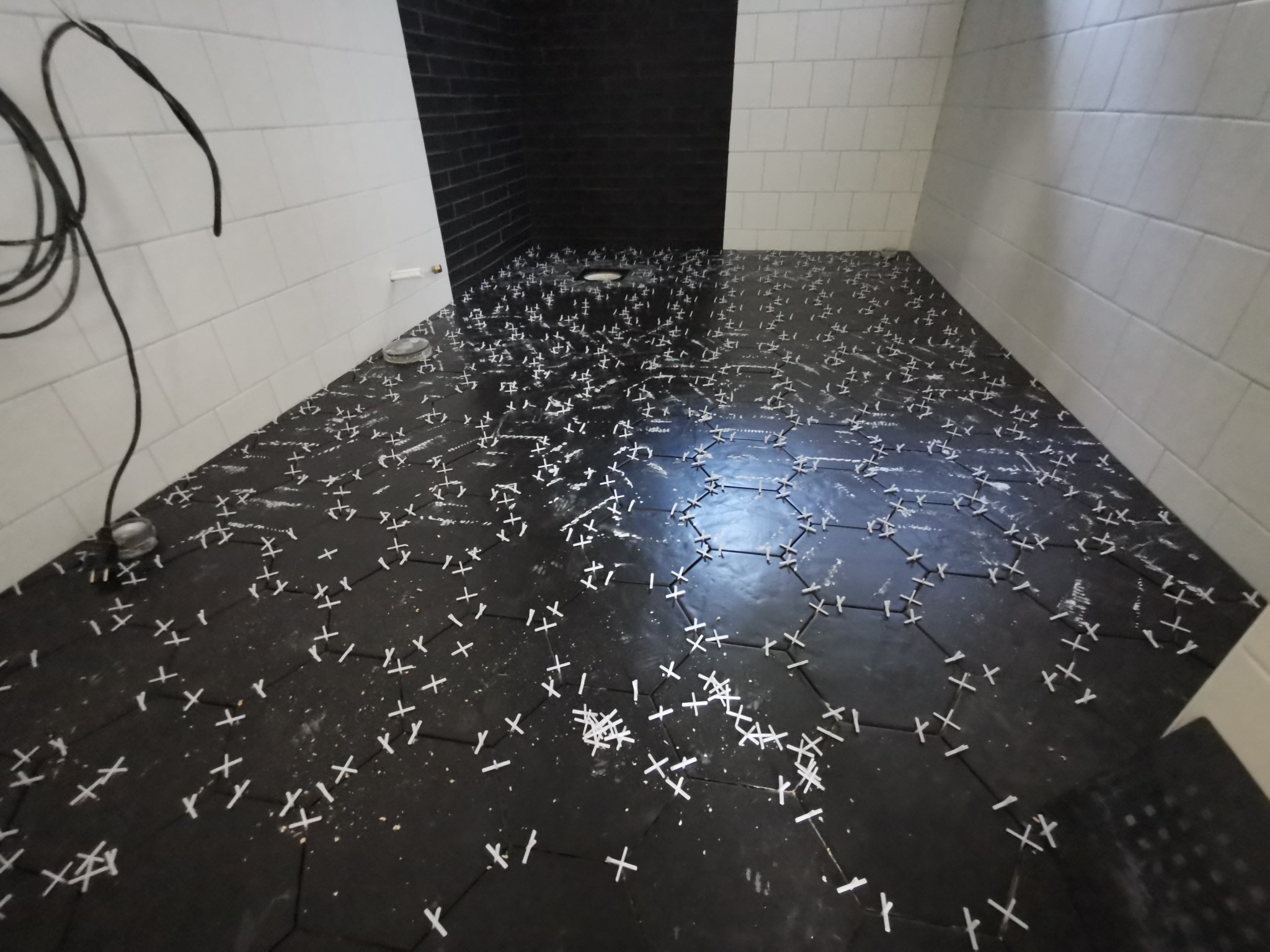 Varit "avbrott" i två dagar då man tydligen hade en akut grej hos en annan kund och då mitt projekt är 7 arbetsdagar före plan och jag har företagets bästa plattsättare så kom de hit i tisdags. Tömde alla verktyg och det blev tomt i hallen... Nu vet jag ju att det är ett bra företag men när det sammanföll med 125.000 fakturan så blir man ju alltid skeptisk. (Det var enligt avtalat lyft och färdigställande).