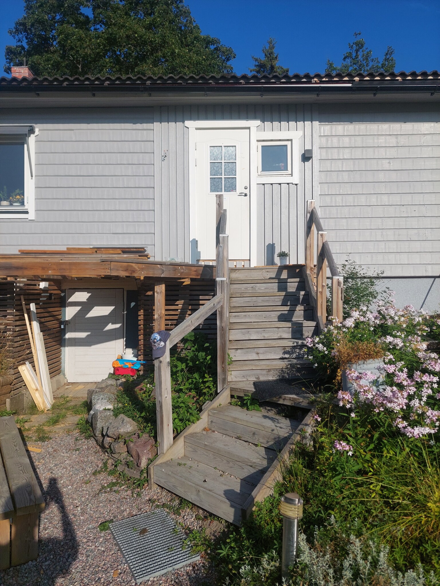 Eventuellt att jag i framtiden skulle bredda gruset vid trappan för att få en snygg gång till källardörren (som används en gång per månad)