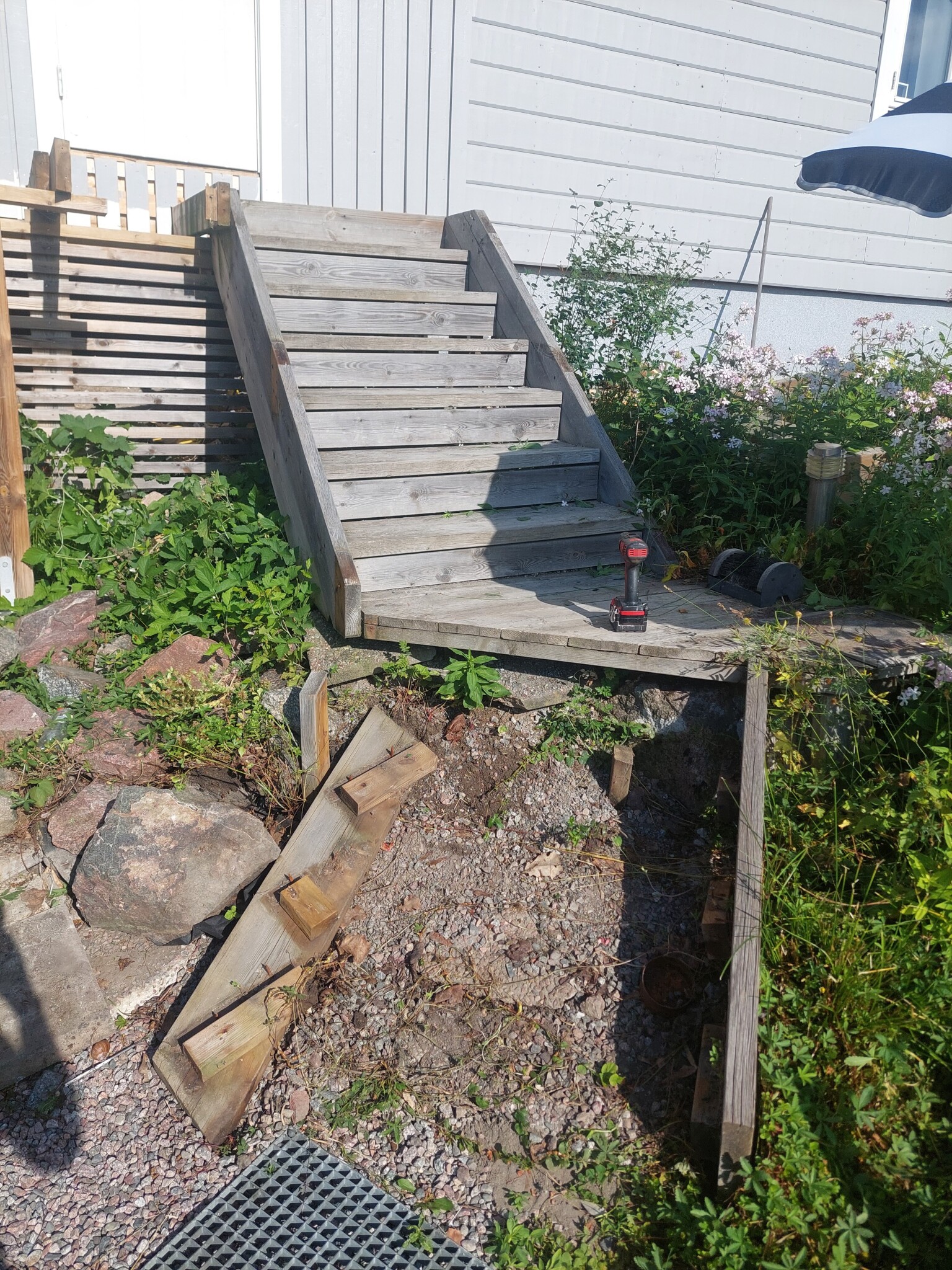 Dock inte skruvarna som sätt sina bästa dagar. Det va verkligen på tiden att den här trappan revs innan det rasade ihop.