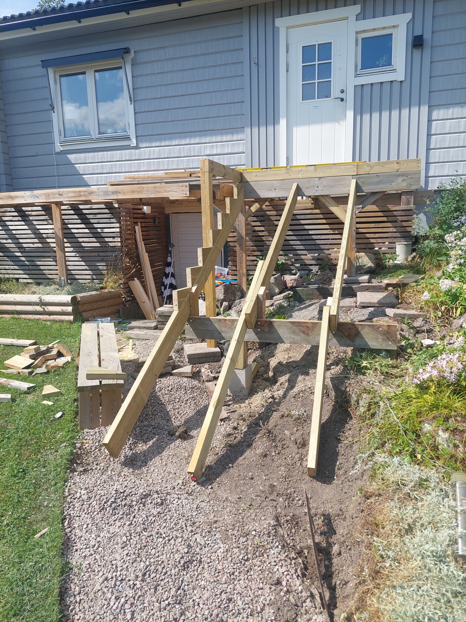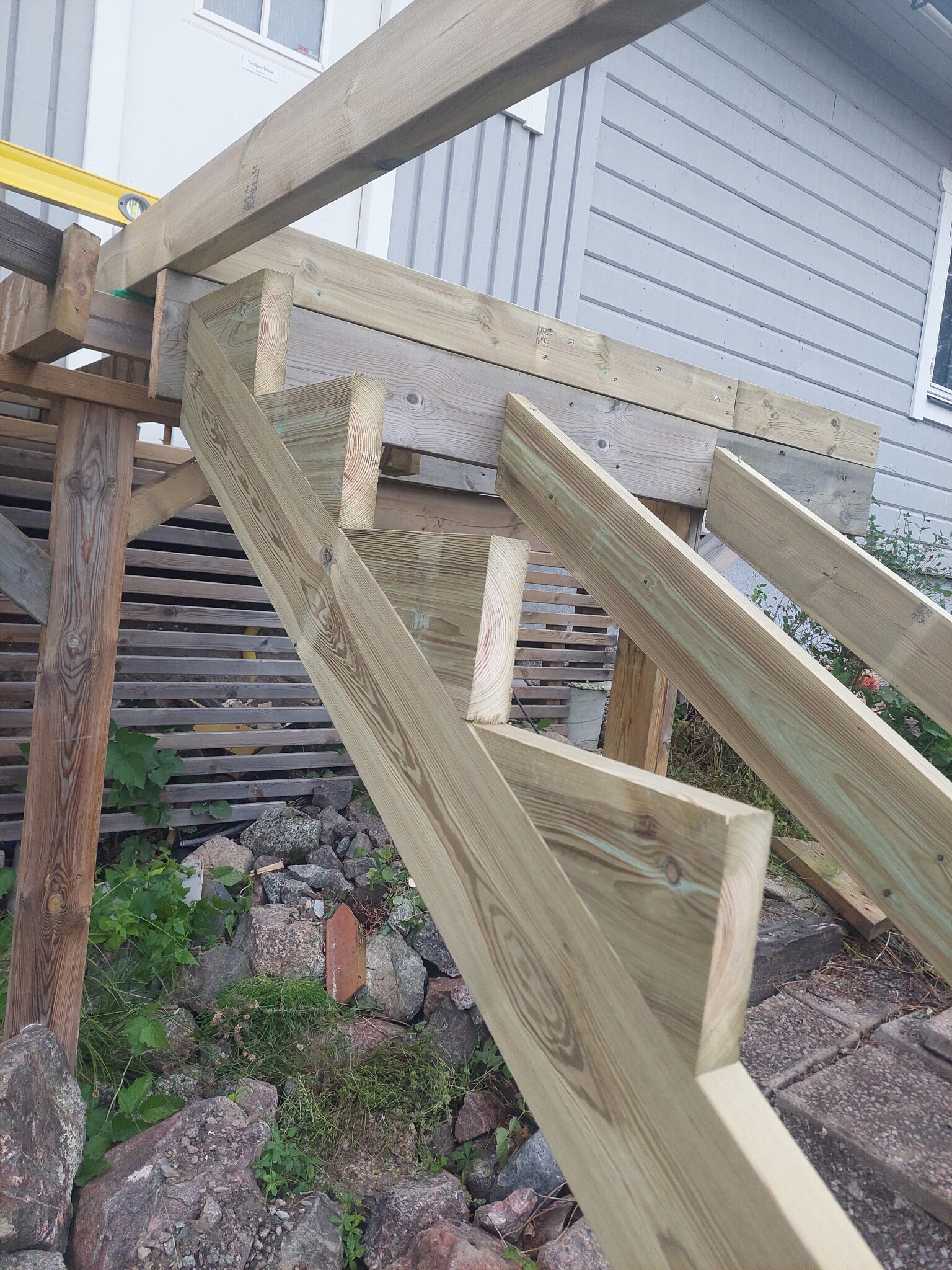 Jag har aldrig byggt en trappa med riktiga vangstycken tidigare, det har mest varit små altantrappor på 3-4 steg.